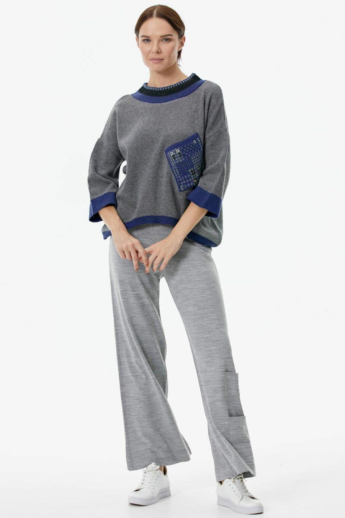Sıfır Yaka Cep Detaylı Triko Kazak - Gri Sıfır Yaka Cep Detaylı Triko Kazak - Gri 22K2115-32406.0001-R0200 Standart
