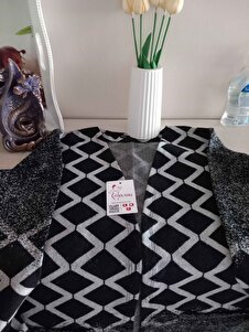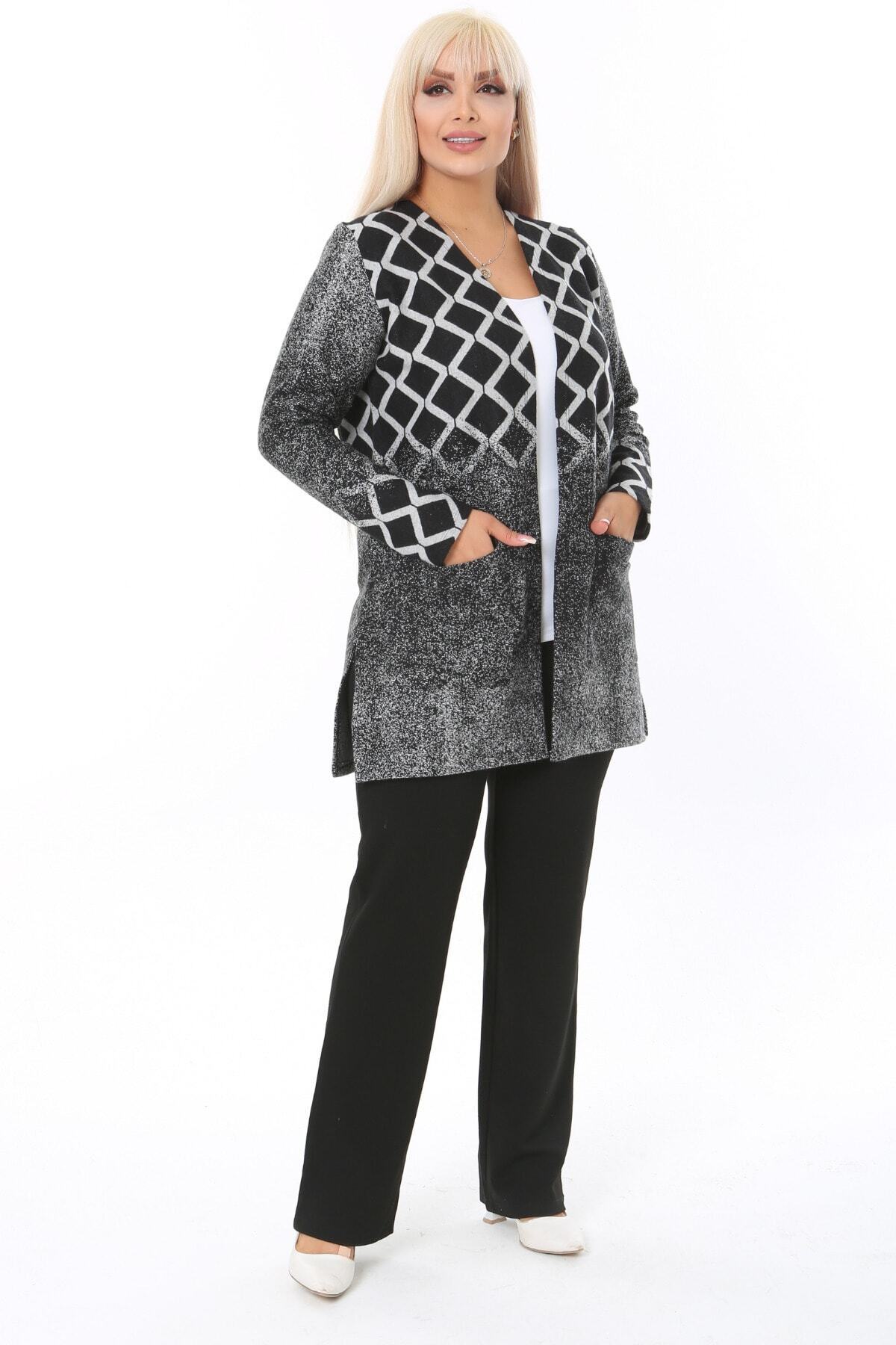 Kadın Jakarlı Gri Baklava Desen Kısa Büyük Beden Hırka Kadın Jakarlı Gri Baklava Desen Kısa Büyük Beden Hırka KSA-HRKA-BKLV 52-54