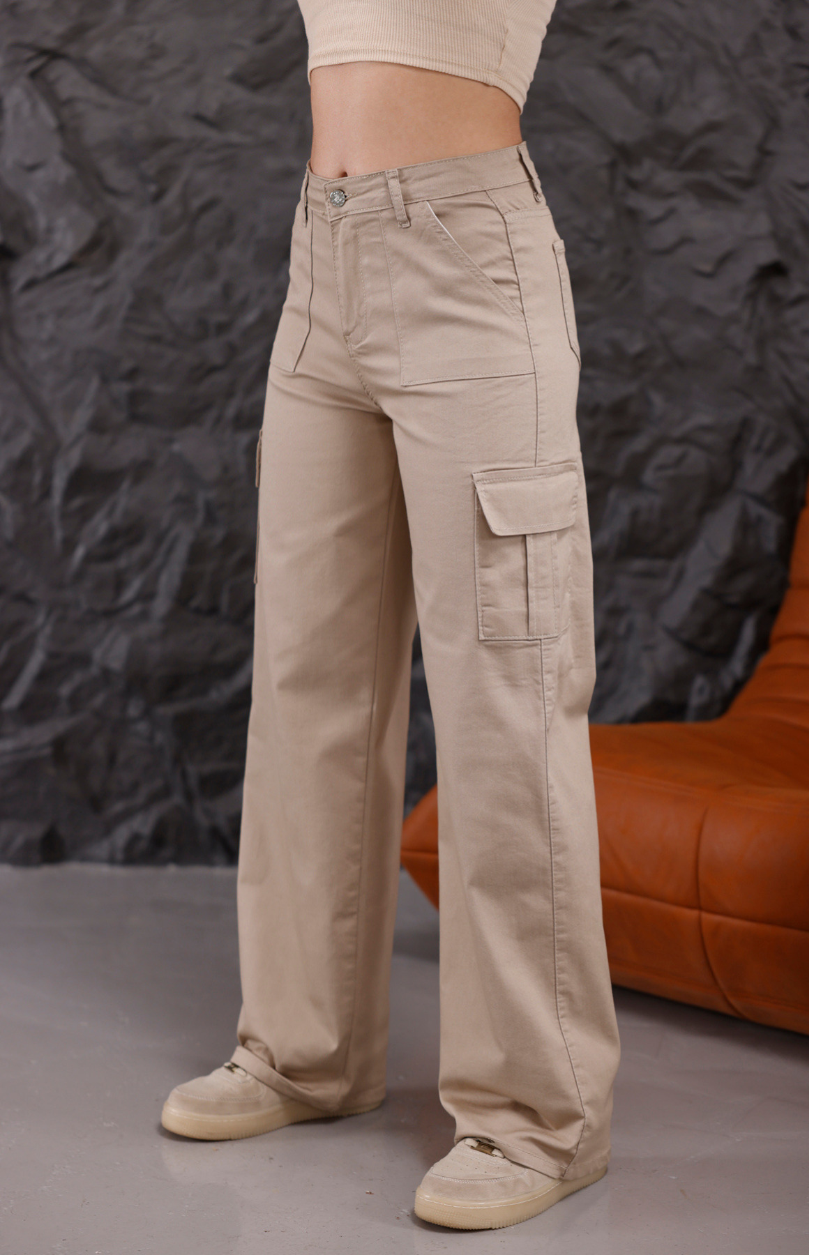 Kadın Bej Yüksek Bel Bol Paça Kargo Pantolon Kadın Bej Yüksek Bel Bol Paça Kargo Pantolon TYC00556191920 32
