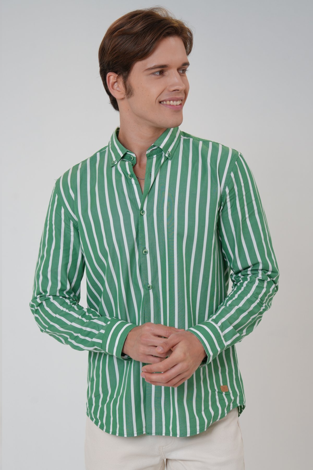 Erkek Yeşil Beyaz Çizgili Pamuklu Oxford Şamre Modern Fit Cepsiz Gömlek Erkek Yeşil Beyaz Çizgili Pamuklu Oxford Şamre Modern Fit Cepsiz Gömlek 202349988101 4XL