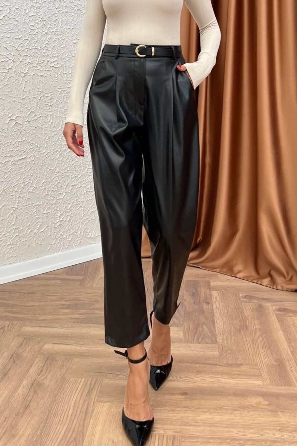 Kadın Gri Dizi Dikişili Deri Pantolon 00369 Kadın Gri Dizi Dikişili Deri Pantolon 00369 L