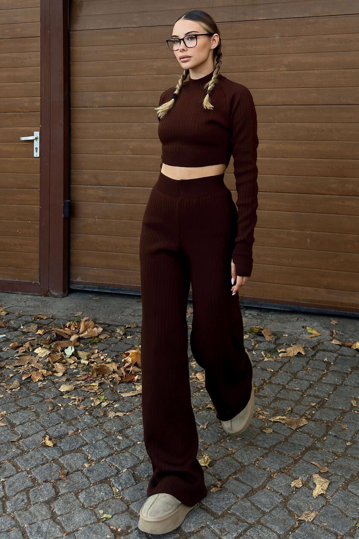 Pembe Yarım Balıkçı Örgü Crop Kazak Pantolon Triko Alt-üst Takım Pembe Yarım Balıkçı Örgü Crop Kazak Pantolon Triko Alt-üst Takım 44601 Standart