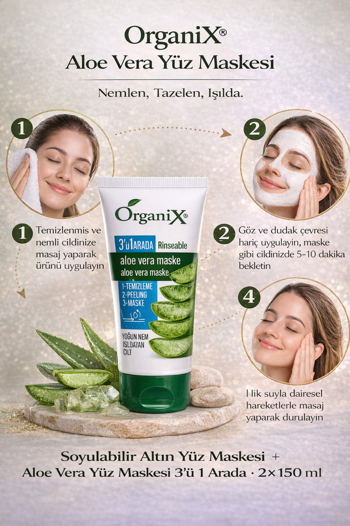 Aloe Vera Yüz Maskesi - 3'ü 1 Arada Temizleme, Peeling ve Nemlendirme Maskesi 150 ml Aloe Vera Yüz Maskesi - 3'ü 1 Arada Temizleme, Peeling ve Nemlendirme Maskesi 150 ml KAR12KOZ تک سایز