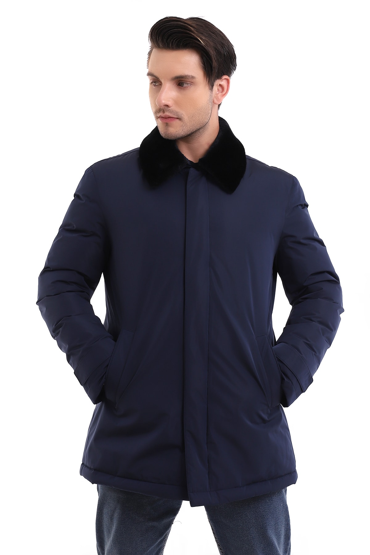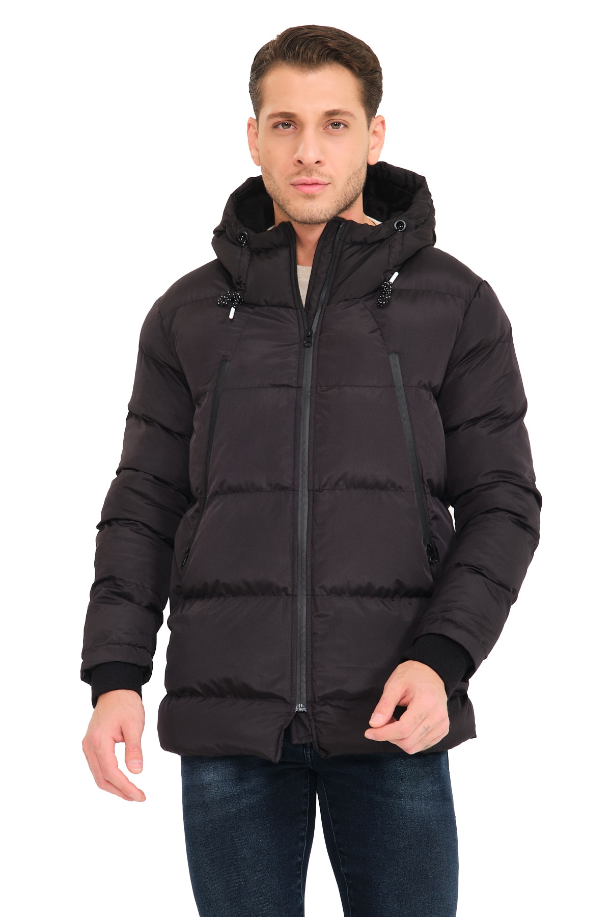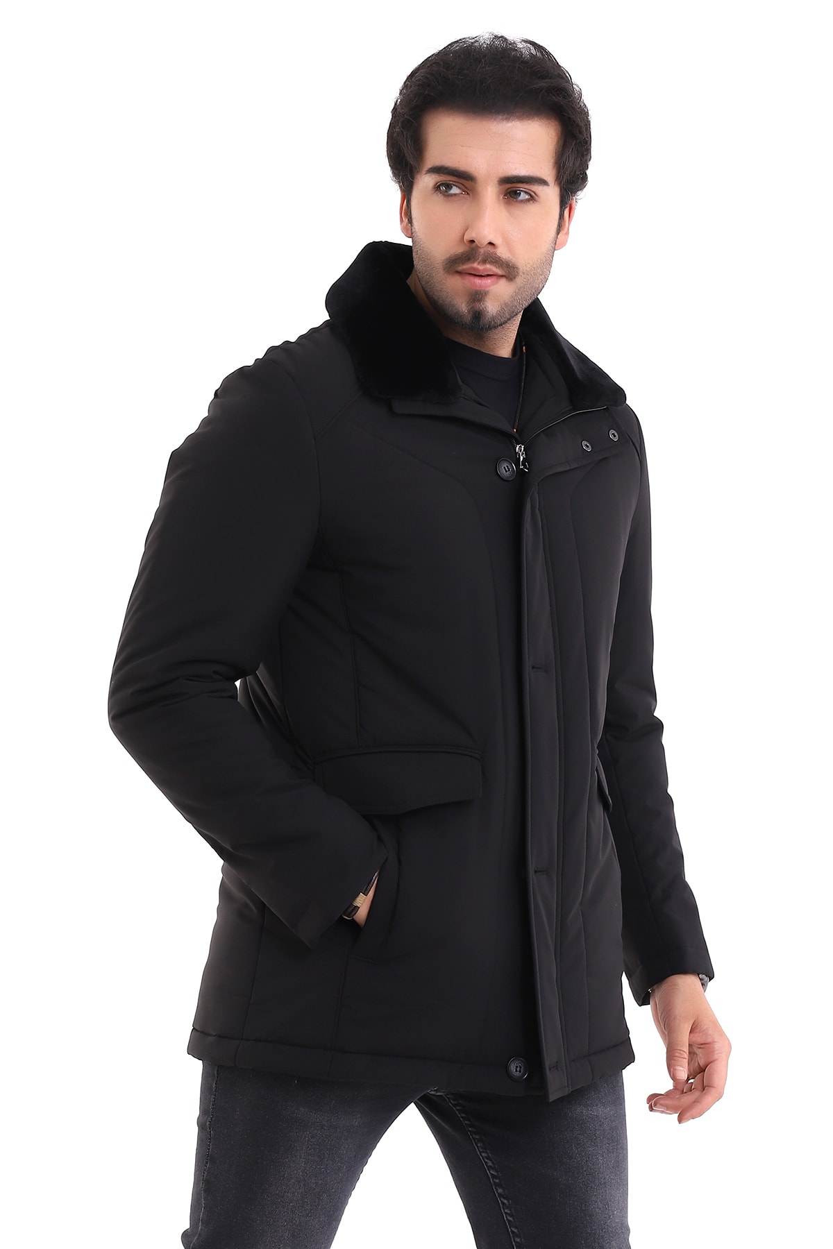 Siyah Lacivert Kısa Modern Spor Kaban Termal Siyah Lacivert Kısa Modern Spor Kaban Termal BKYK7157 58