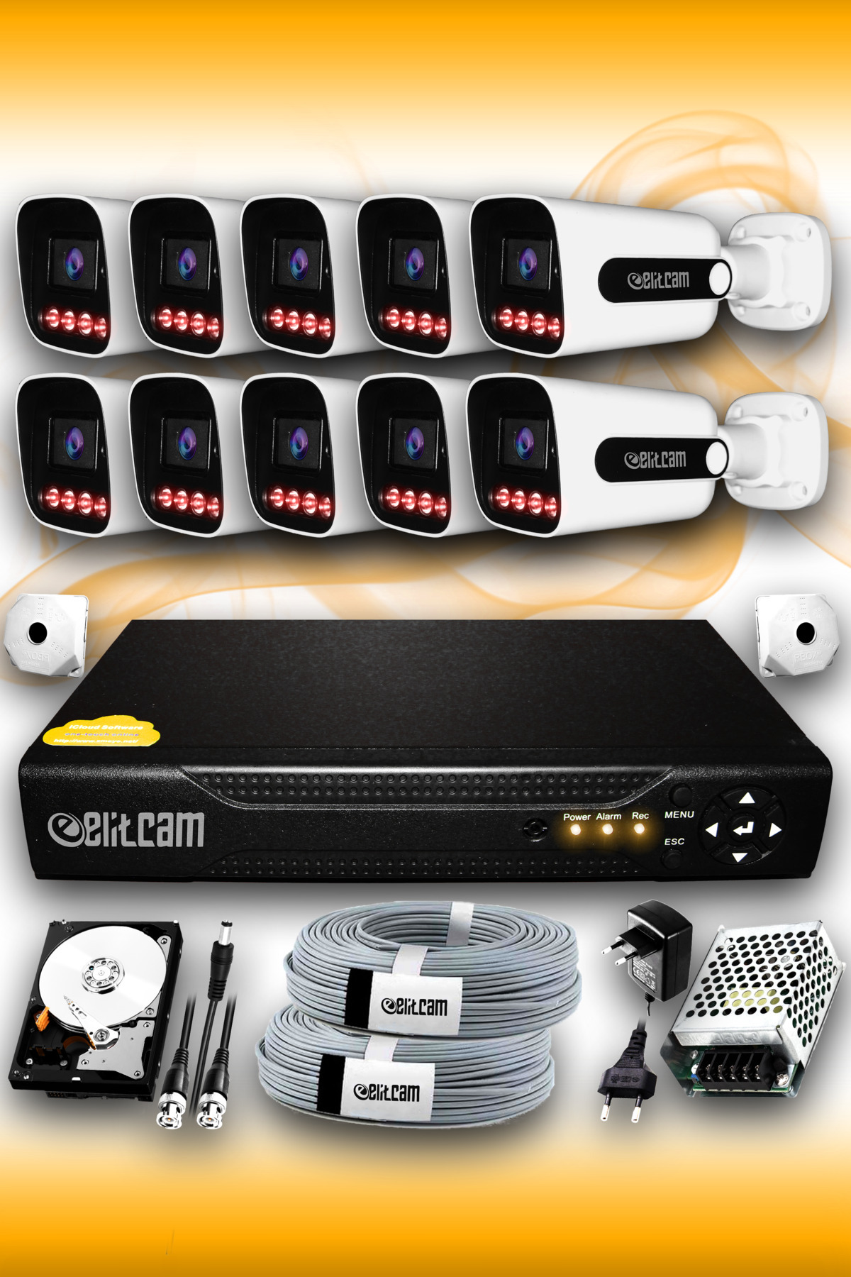 10 Kameralı Süper 10 Dış Kamera Set 500 GB 5 MP 2K Net Gece Görüşlü Güvenlik Kamerası Sistemi 10 Kameralı Süper 10 Dış Kamera Set 500 GB 5 MP 2K Net Gece Görüşlü Güvenlik Kamerası Sistemi E-K1002500-3 تک سایز