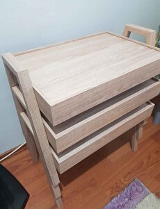 Kardesim yeni evlendi ürünü ev hediyesi olarak almıştım. Yarın akşam yemeğe davetliyiz tozunu alip giderken goturecegim çayımı bu sehpada içeceğim.🫠 Satış tamamlandiktan sonra satıcıya mesaj atmıştım hediye olacağını ekstra ambalajlamalarini ve en geç cumartesi elimde olması gerektiğini. Sağ olsunlar kirmadilar. Kutuyu kalin bir patpata da sarmislar tek bir çizik yoktu mobilyalarda. Dun kargoya verildi bugün elime ulaştı. 1 sehpanın kurulumu tek basima 3 dk aldi. Ürün işlevsel zaten hem tepsi görevi görüyor hem üst uste konulunca yer kaplamıyor. Rengi deseni muazzam. Eksik parcasi yoktu laminanti cizmemesi adina sehpa ayagina yapistirmak icin mini koruyucu bile var. Uzun omurlu olmasi adina muntazam kullanmakta fayda var elbet. Satıcıya cok teşekkür ederim.