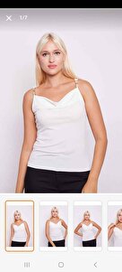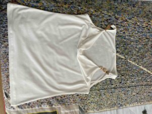 Krep Penye Degaje Yaka Aksesuar Detaylı Kolsuz Bluz -Krem Krep Penye Degaje Yaka Aksesuar Detaylı Kolsuz Bluz -Krem 20337 XL