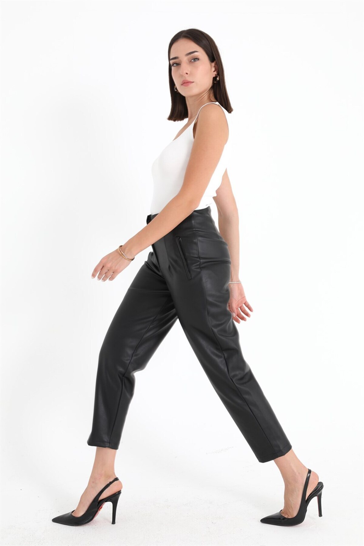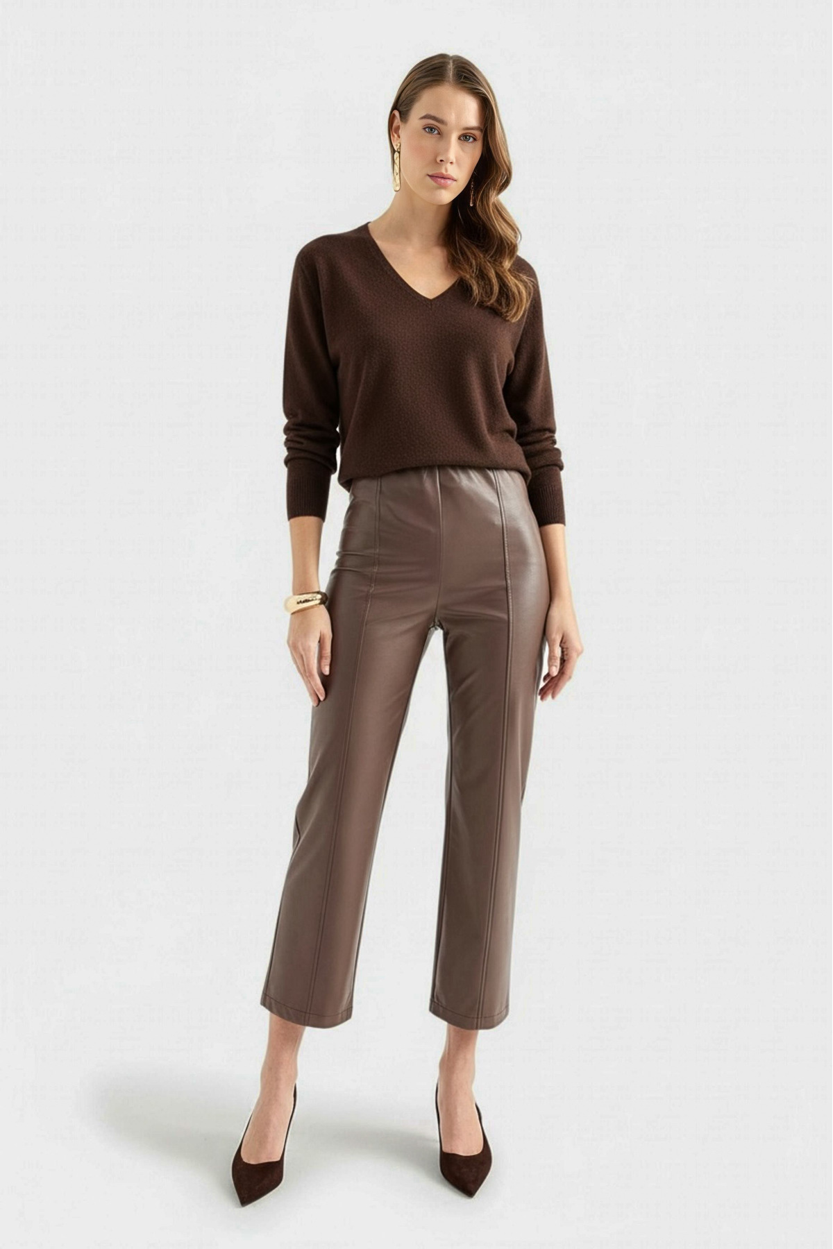 Pensli Yüksek Bel Deri Pantolon - Taba Pensli Yüksek Bel Deri Pantolon - Taba 2022725 L
