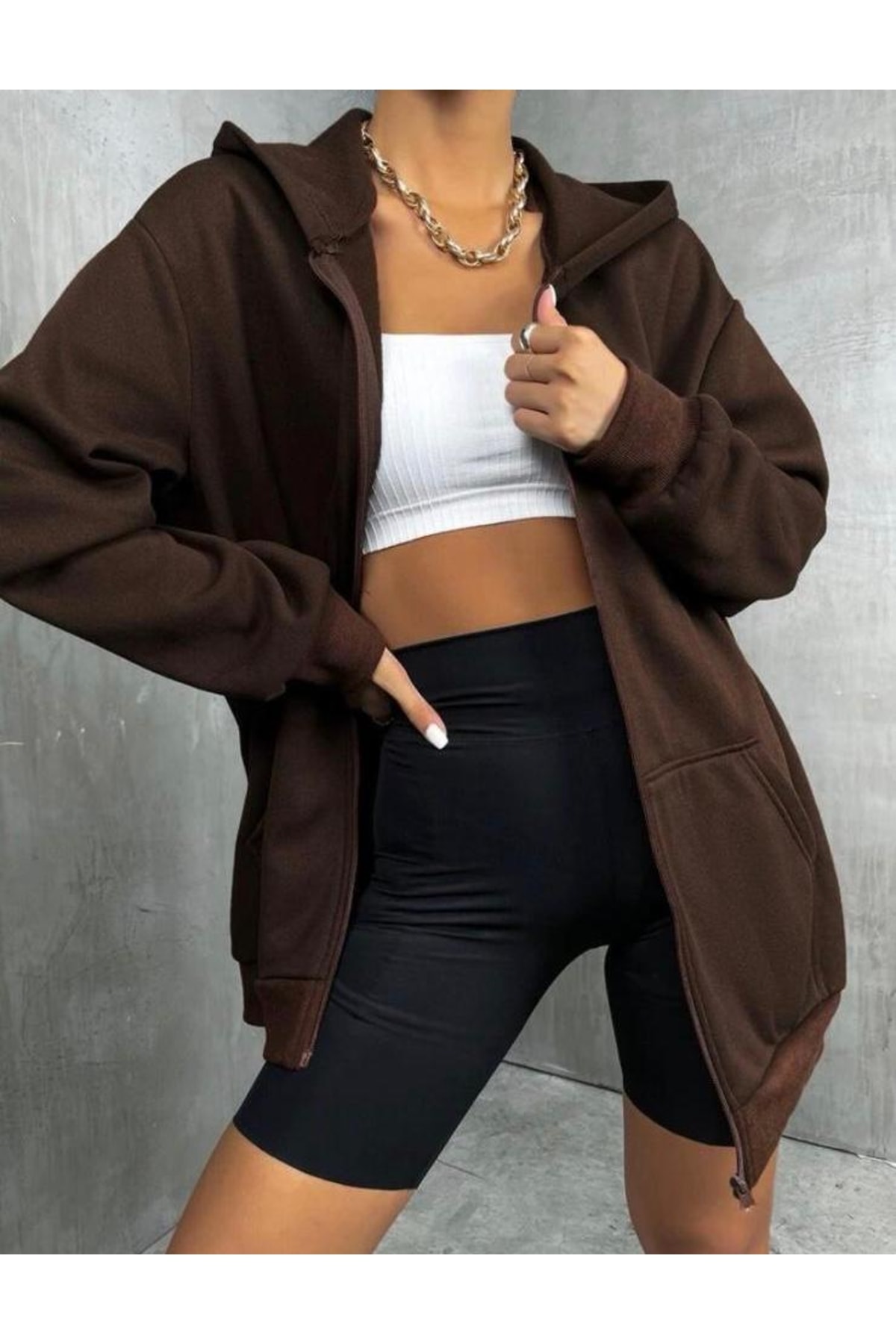 Kadın Düz Oversize Fermuarlı Hırka Kadın Düz Oversize Fermuarlı Hırka düz fermuarlı hırka XL