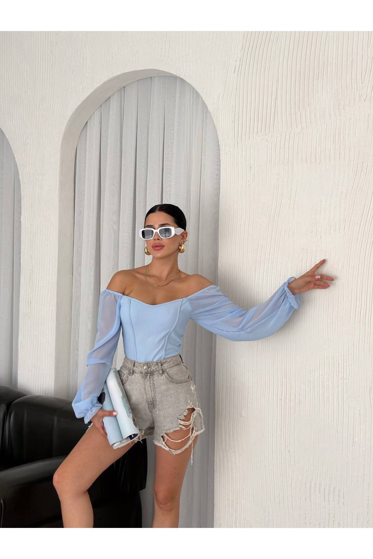 Kadın Ekru Ön Arka V Yaka Kruvaze Bluz ALC-019-053-BLZ Kadın Ekru Ön Arka V Yaka Kruvaze Bluz ALC-019-053-BLZ L