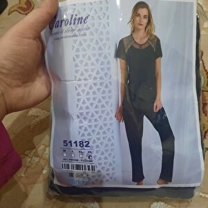 Yaka Dantelli Kısa Kollu Pijama Takımı Yaka Dantelli Kısa Kollu Pijama Takımı CR51182 XL