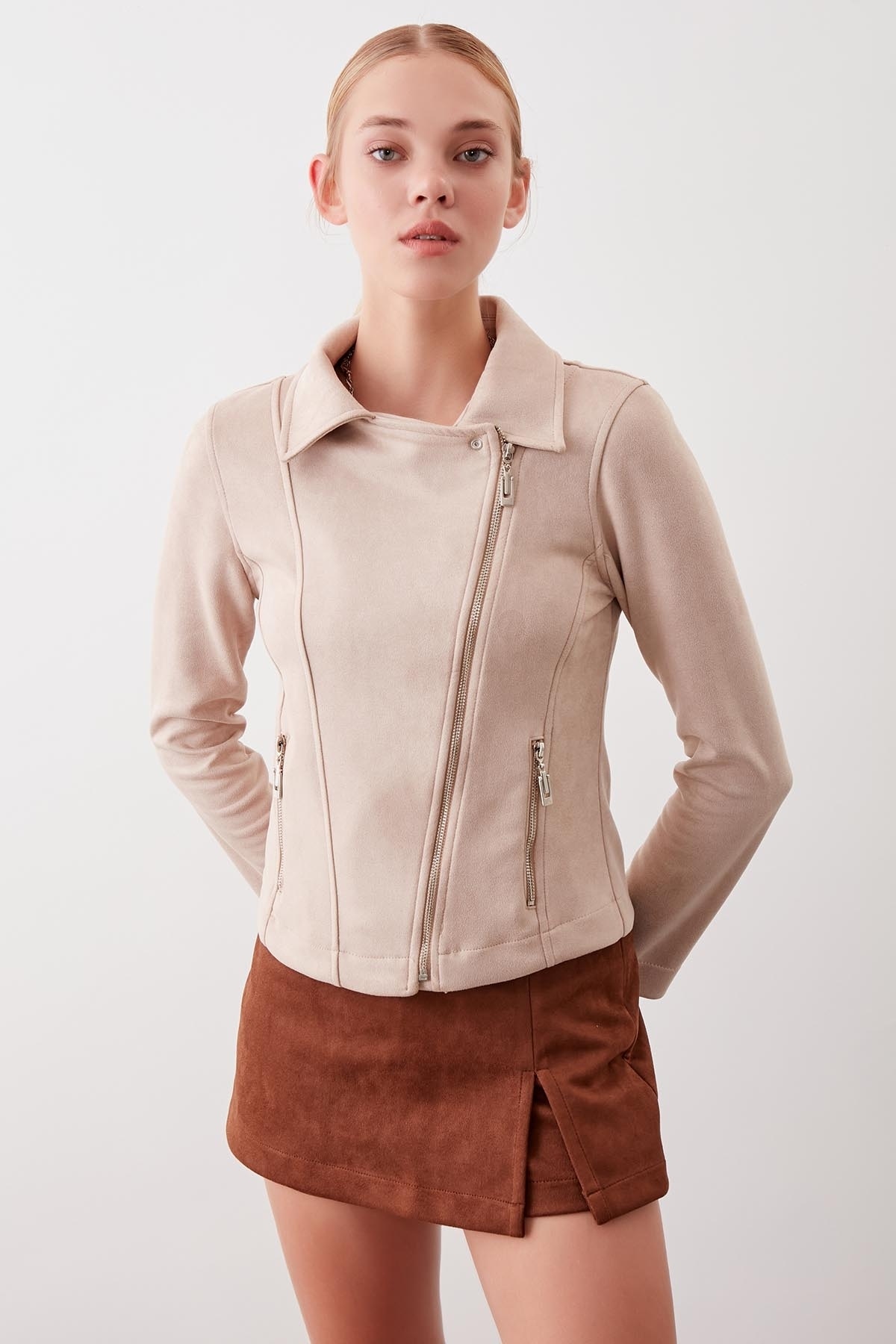 Kelebek Yaka Suni Süet Biker Ceket Kelebek Yaka Suni Süet Biker Ceket 21-8155 XL