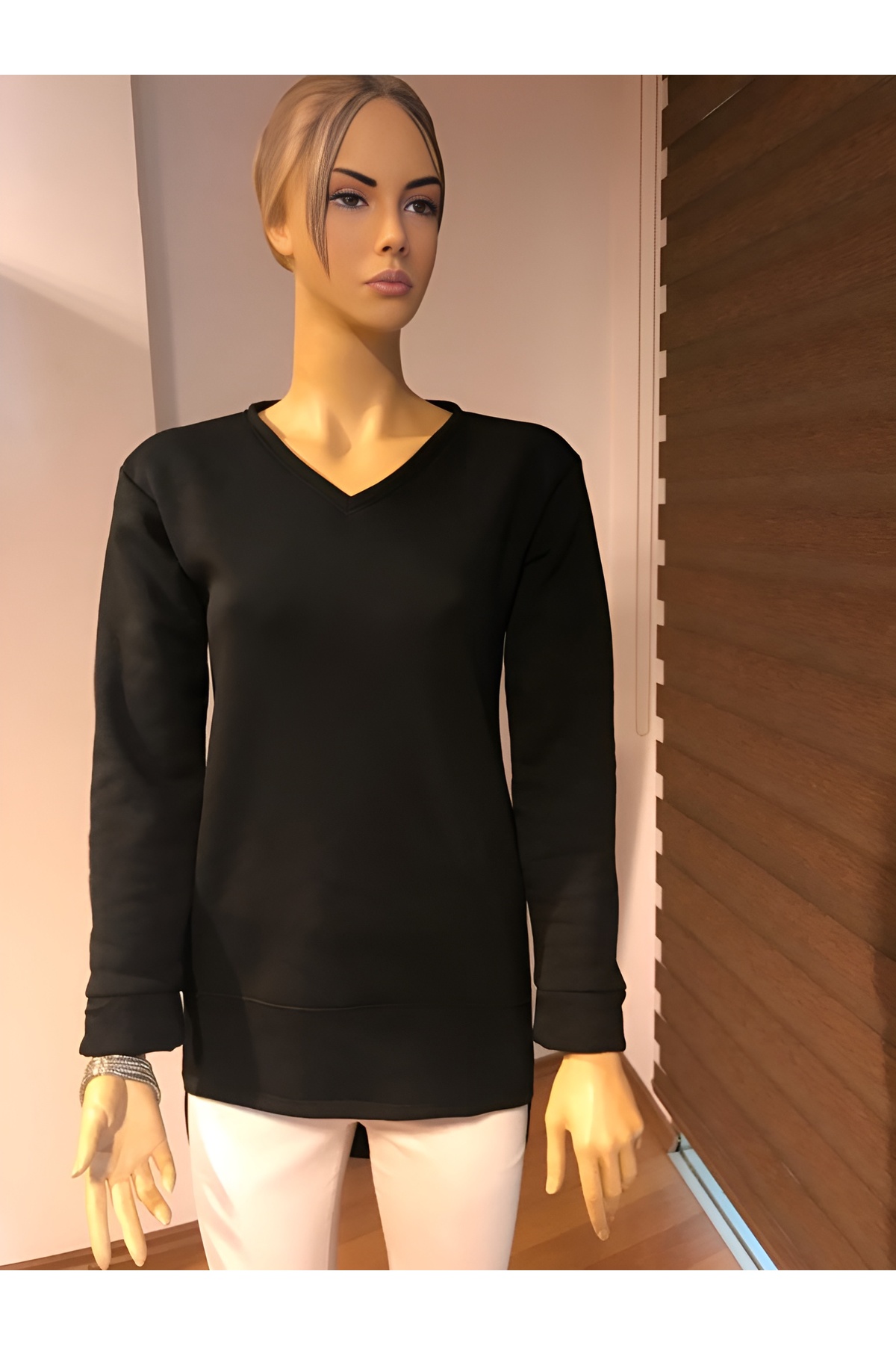 Kadın V Yaka Uzun Kollu T-shirt Kadın V Yaka Uzun Kollu T-shirt ORCLVS XL