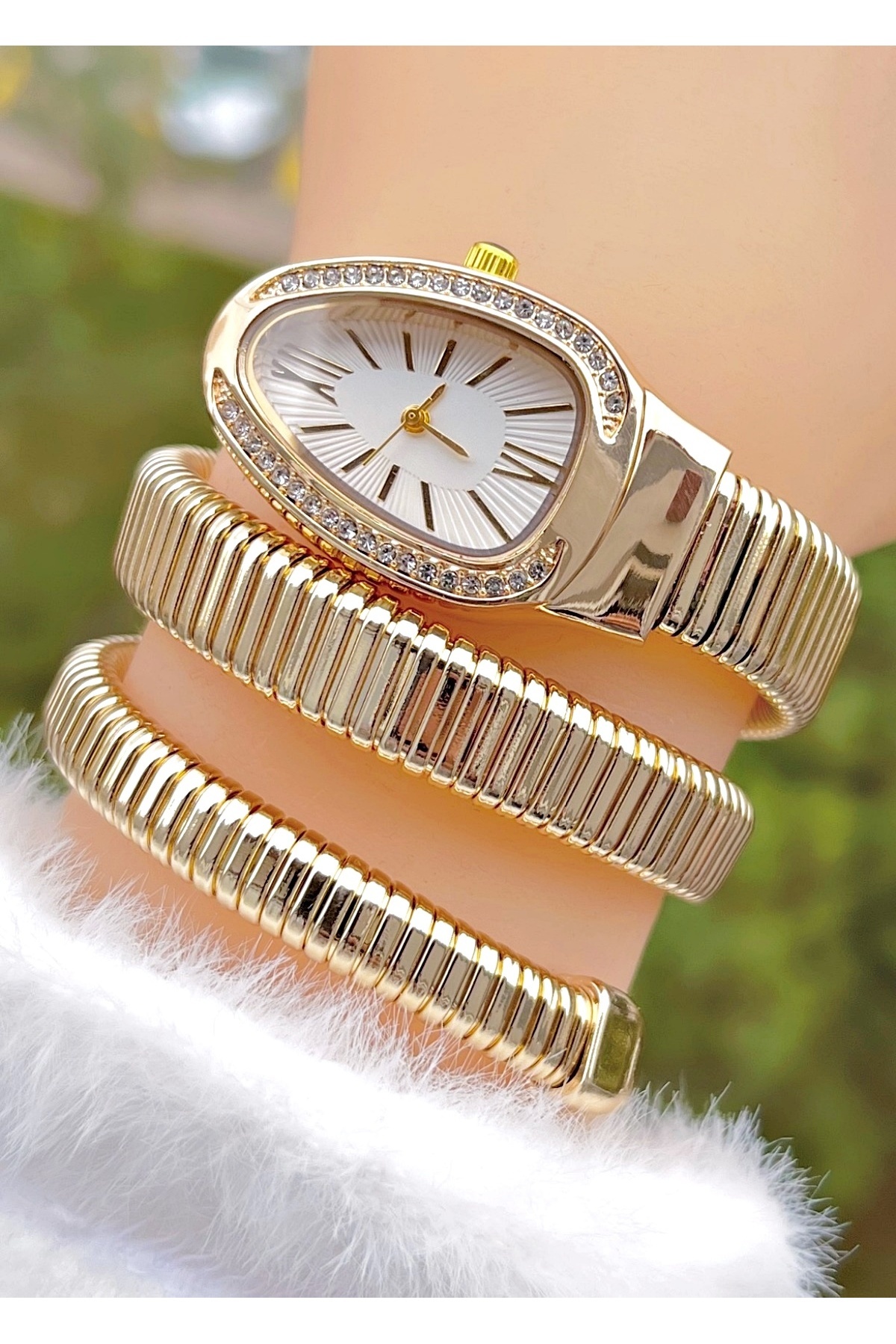 Altın Renk Beyaz Kadran Yılan Model Vintage Kadın Kol Saati Altın Renk Beyaz Kadran Yılan Model Vintage Kadın Kol Saati WL00101Y تک سایز