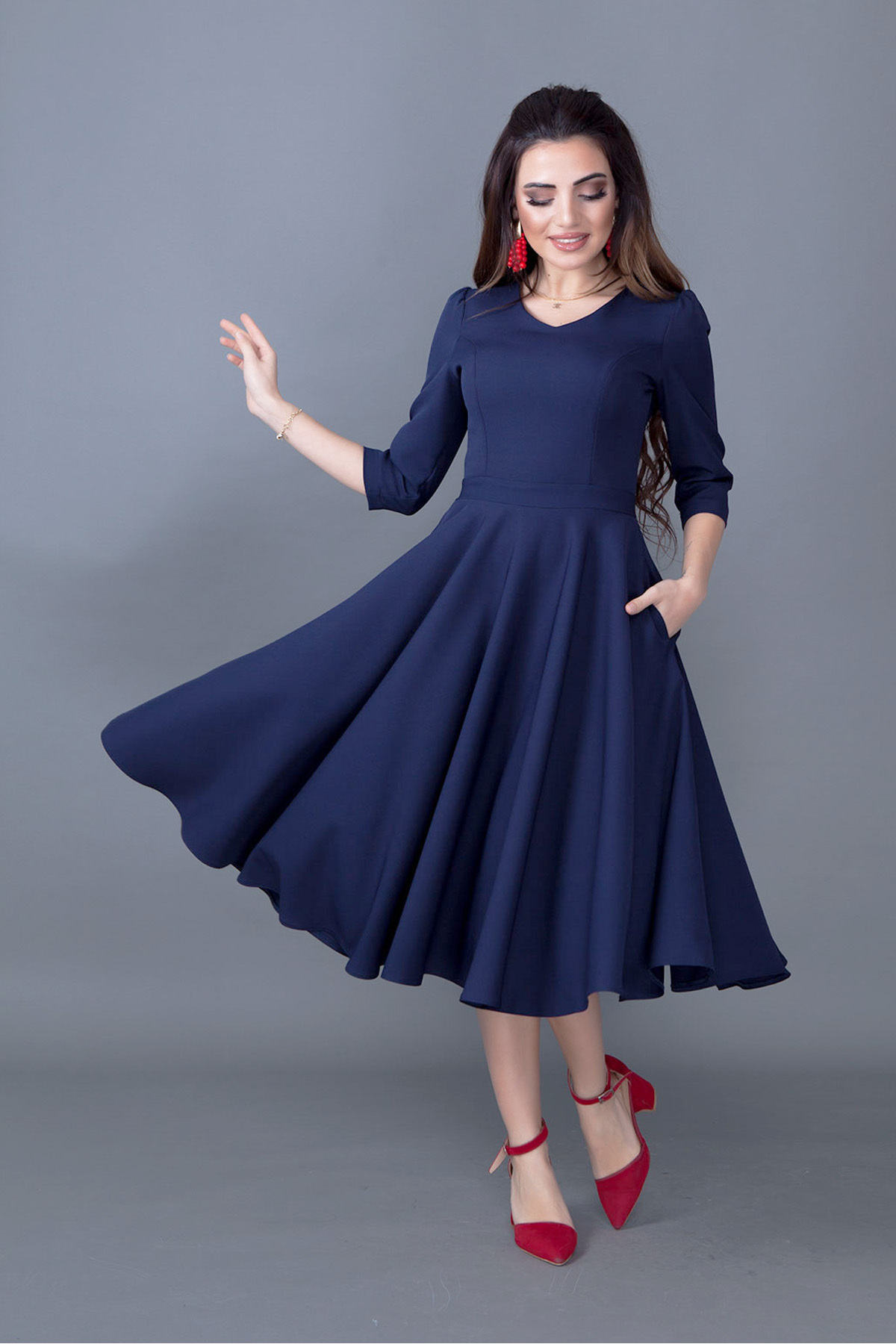 Kadın Mavi Krep Kumaş Midi Boy Kuşaklı Uzun Kol Mezuniyet Düğün Nikah Elbisesi (MAVİ) Kadın Mavi Krep Kumaş Midi Boy Kuşaklı Uzun Kol Mezuniyet Düğün Nikah Elbisesi (MAVİ) TE-26057-S 3XL