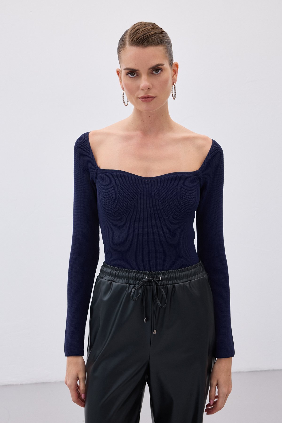 Kalp Yaka Triko Bluz - Ekru Kalp Yaka Triko Bluz - Ekru STN678KTR135 Standart