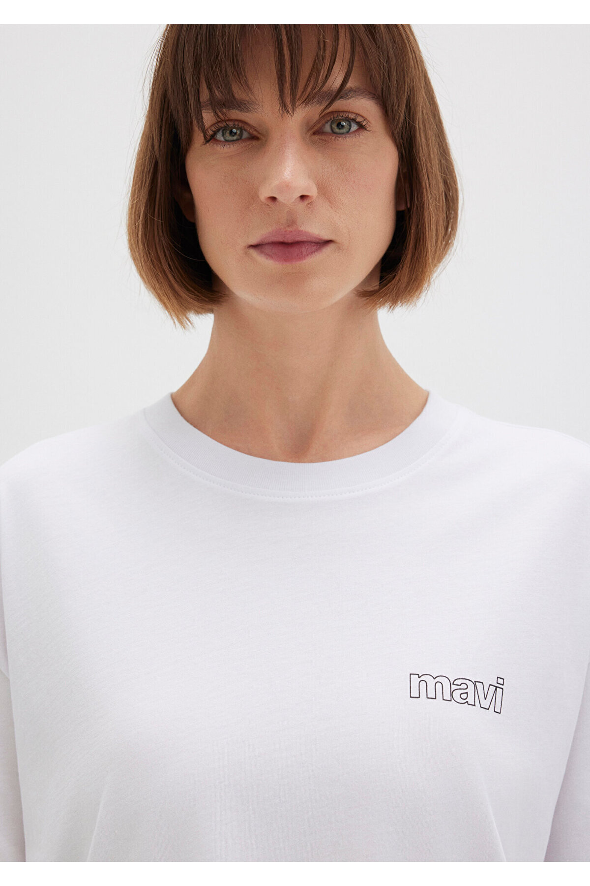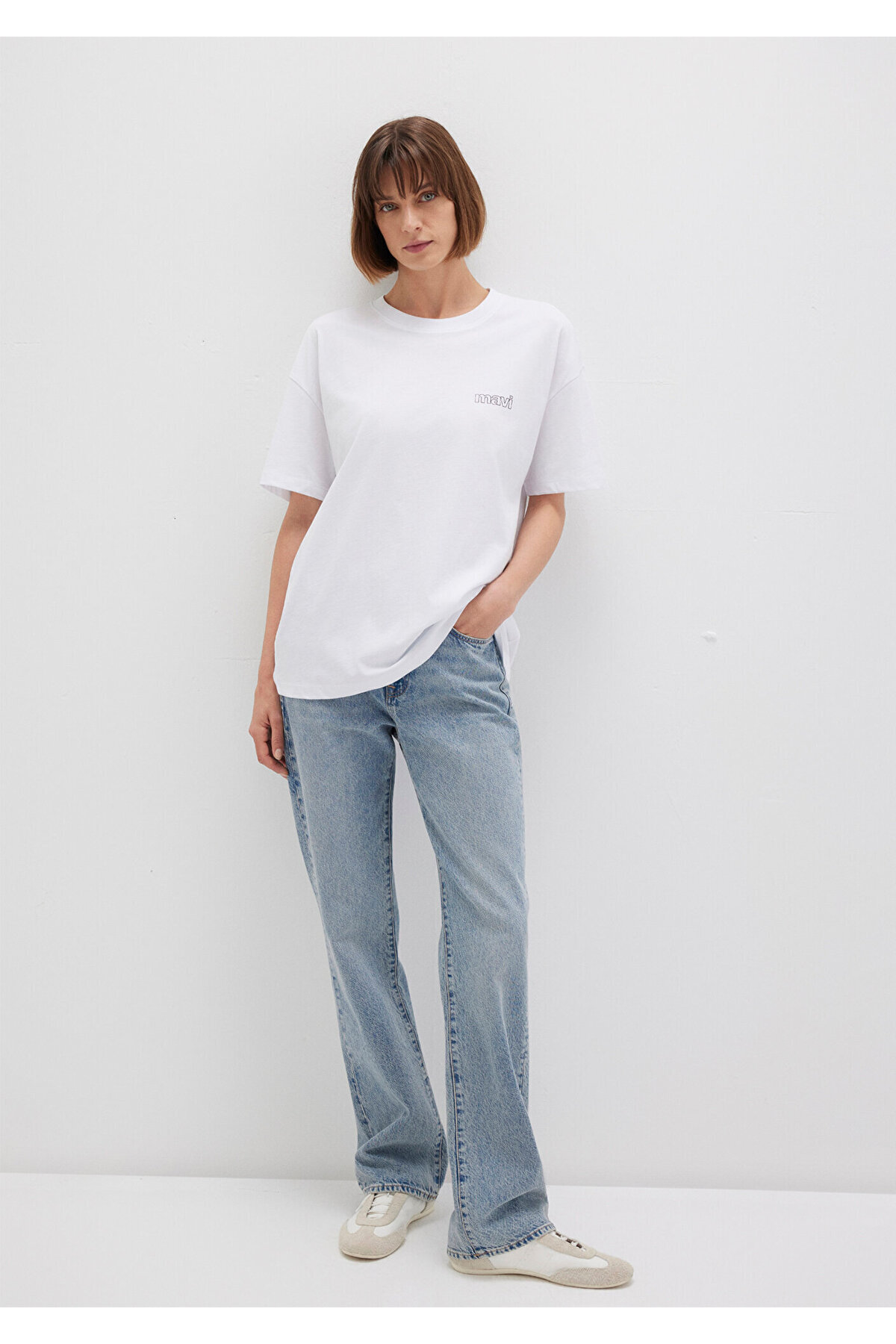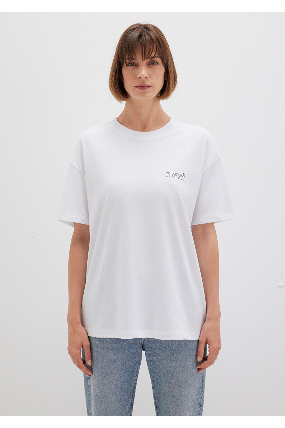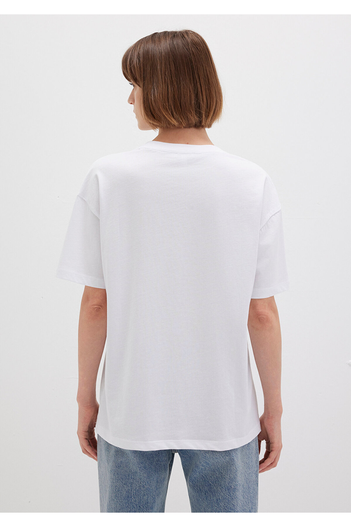 Logo Baskılı Beyaz Tişört Loose Fit / Bol Rahat Kesim 1611309-620 Logo Baskılı Beyaz Tişört Loose Fit / Bol Rahat Kesim 1611309-620 L