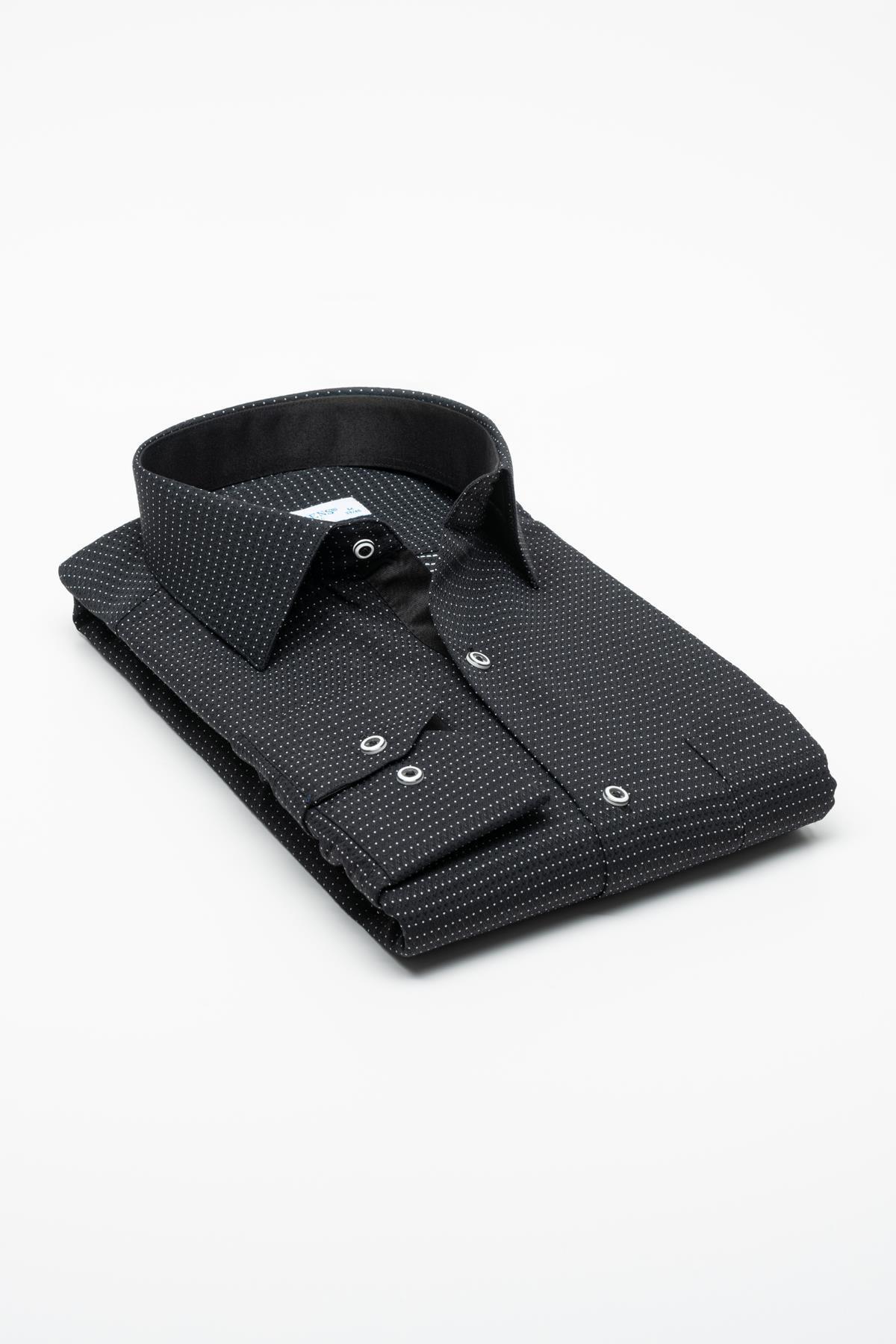 Klasik Uzun Kol Nokta Desenli Hediye Kutulu Erkek Gömlek FS-001259 - Siyah Klasik Uzun Kol Nokta Desenli Hediye Kutulu Erkek Gömlek FS-001259 - Siyah 5XL
