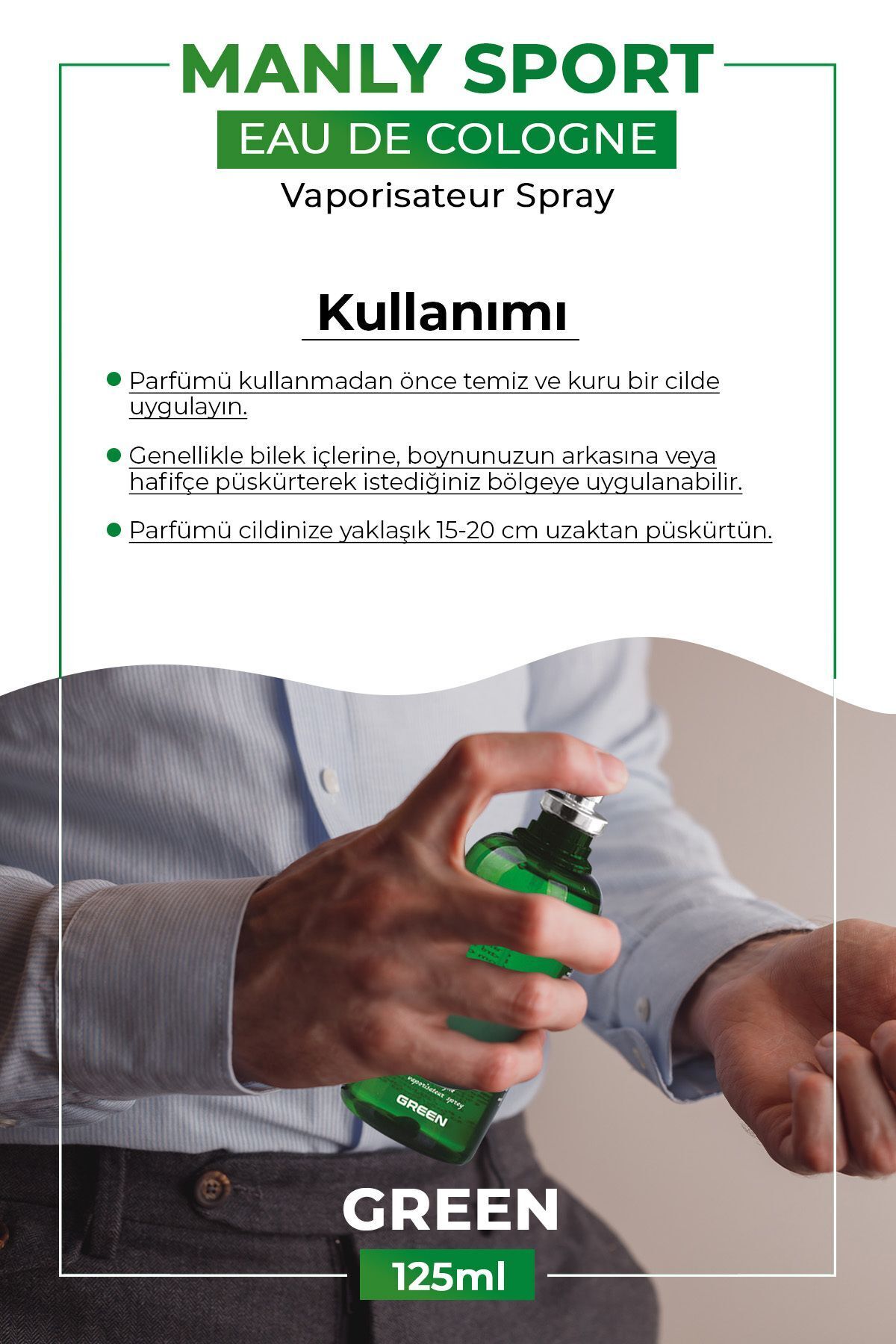 Manly Green Kolonya Parfüm 125 ml Manly Green Kolonya Parfüm 125 ml P647S8339 تک سایز
