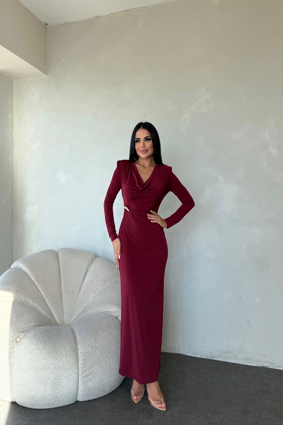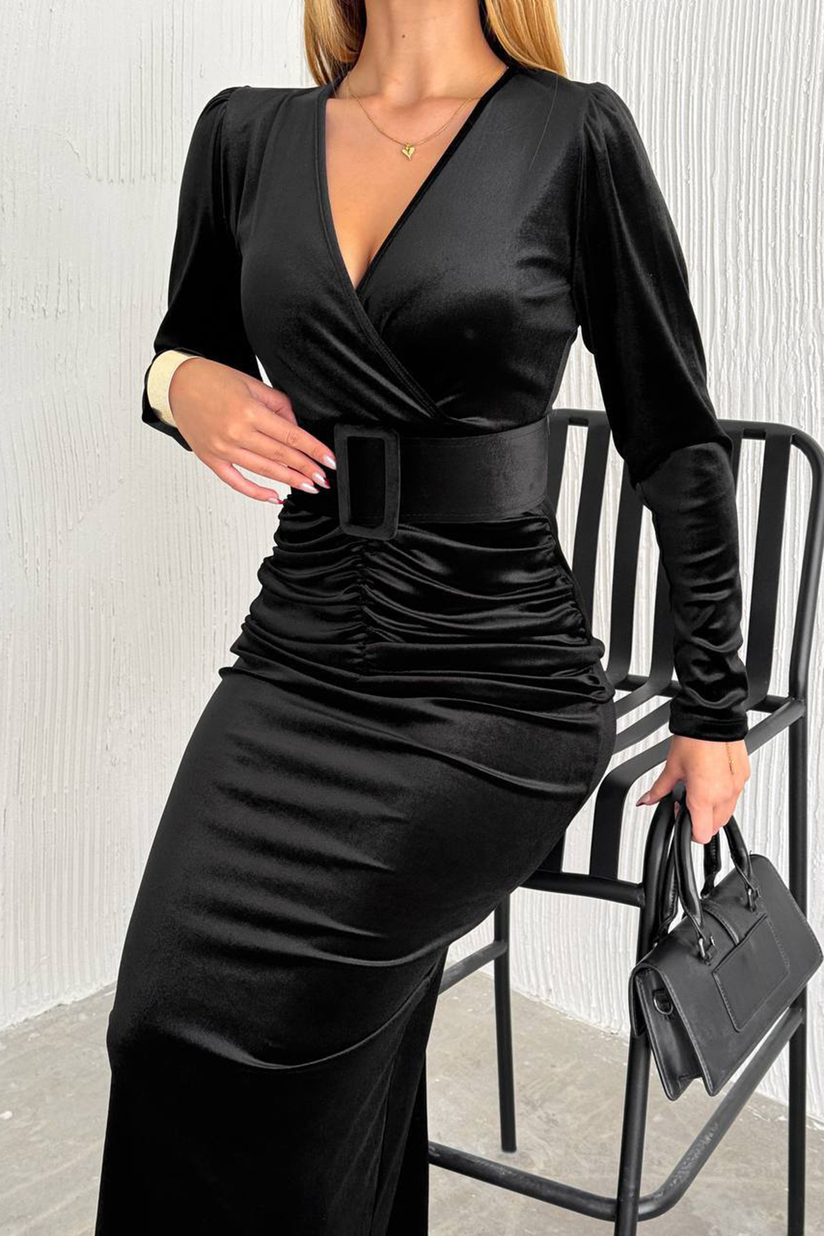 Kruvaze Yaka Kadife Kumaş Kemerli Elbise Kruvaze Yaka Kadife Kumaş Kemerli Elbise LLSTNBL-530 XL