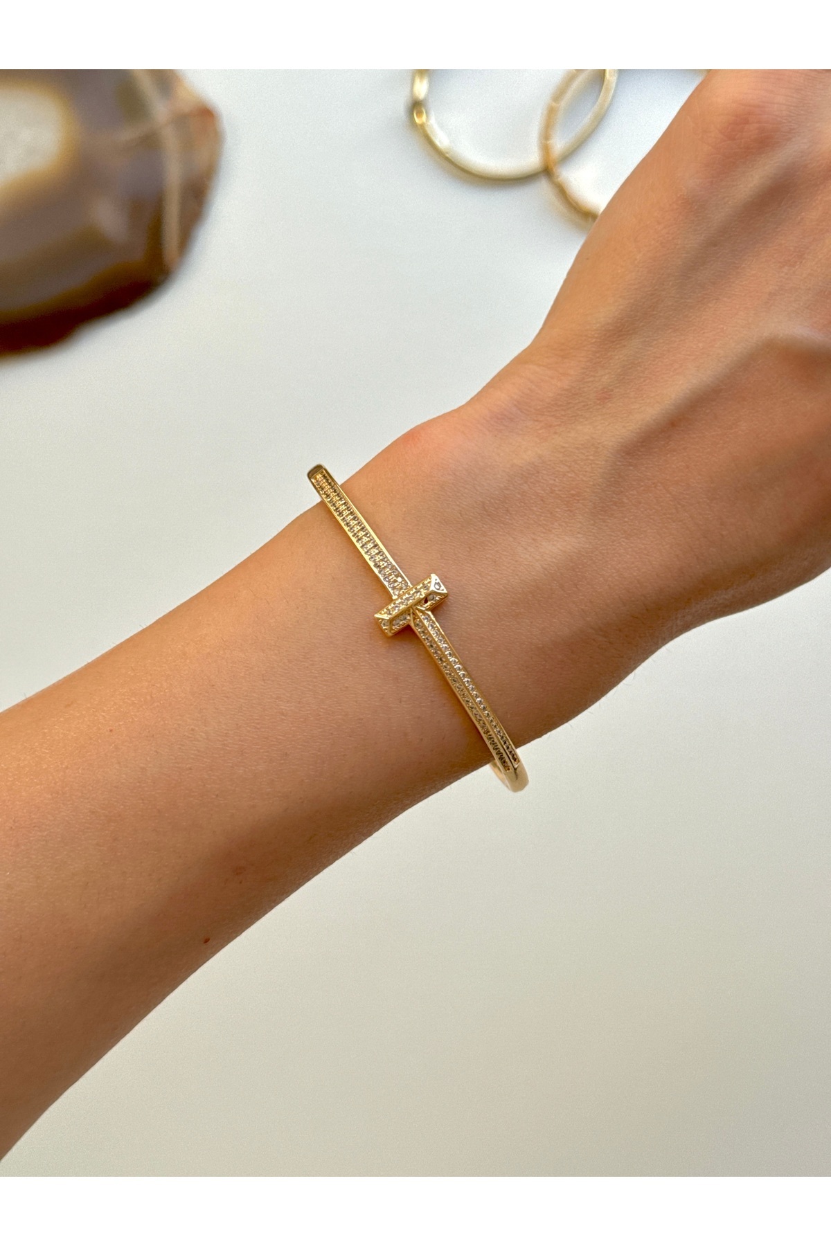 Zirkon Taşlı Kelepçe Pirinç Bileklik - Rodyum Zirkon Taşlı Kelepçe Pirinç Bileklik - Rodyum MG010020035B تک سایز
