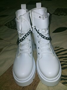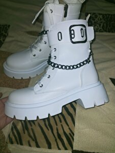 Tek Tokalı Zincirli Beyaz Kadın Postal Bot Tek Tokalı Zincirli Beyaz Kadın Postal Bot İFS78G 40