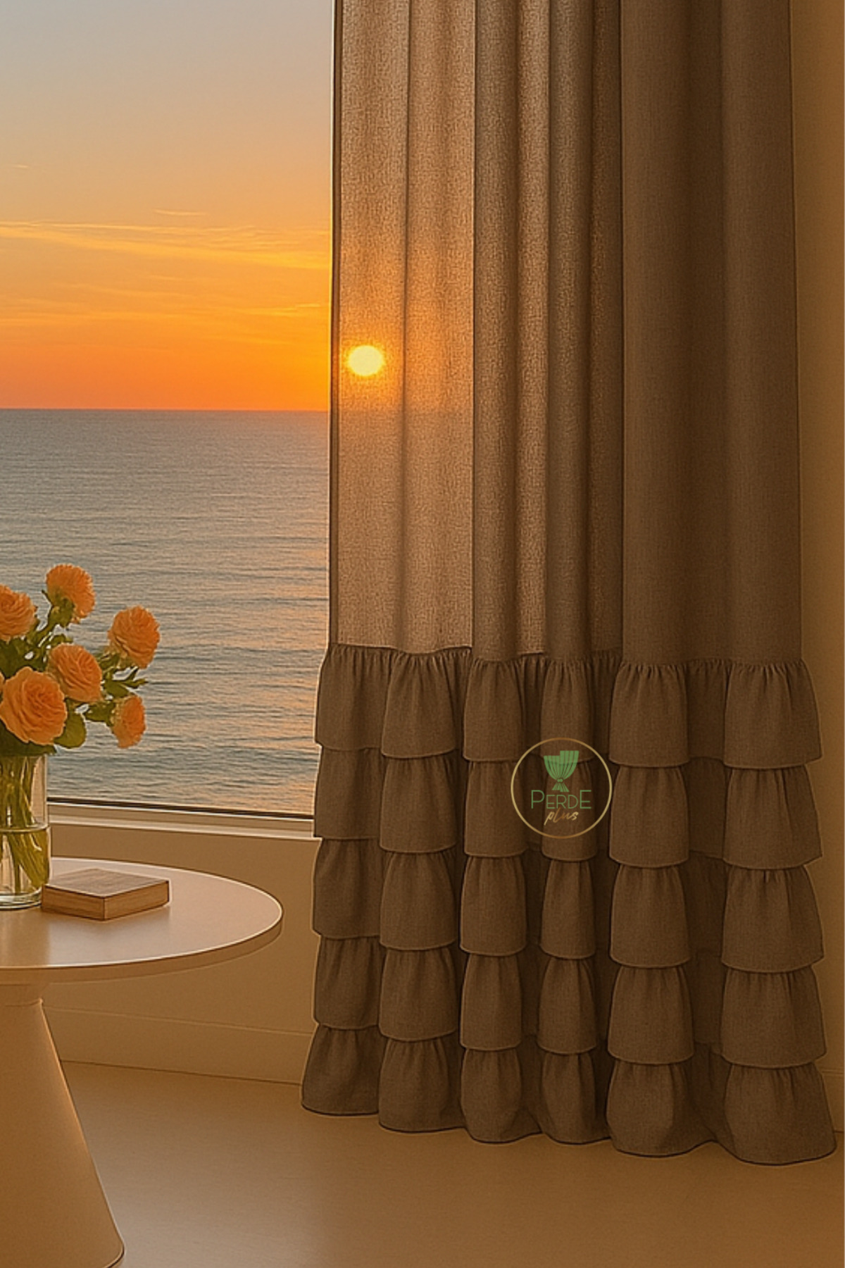 Keten Tül Perde Tasarım Eteği Fırfırlı Kırık Beyaz Keten Tül Perde Tasarım Eteği Fırfırlı Kırık Beyaz PLUS4 140 x 270