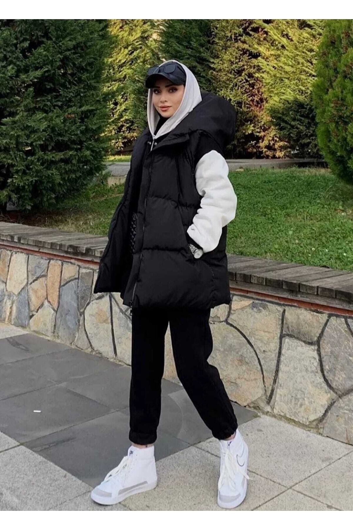 Kadın Gri Cepli Kapüşonlu Kolsuz Şişme Yelek Kadın Gri Cepli Kapüşonlu Kolsuz Şişme Yelek TYC00565361247 XL