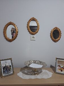 Polyester Üçlü Küçük Güllü Ayna Duvar Polyester Üçlü Küçük Güllü Ayna Duvar GÜLLÜ ÜÇLÜ AYNA DUVAR AKSESUAR SÜS تک سایز