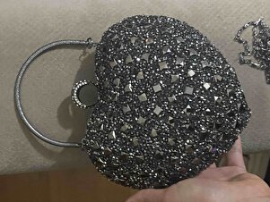 Kadın Kalpli Taşlı Antrasit Abiye Çanta Kadın Kalpli Taşlı Antrasit Abiye Çanta RZ-00000085 تک سایز