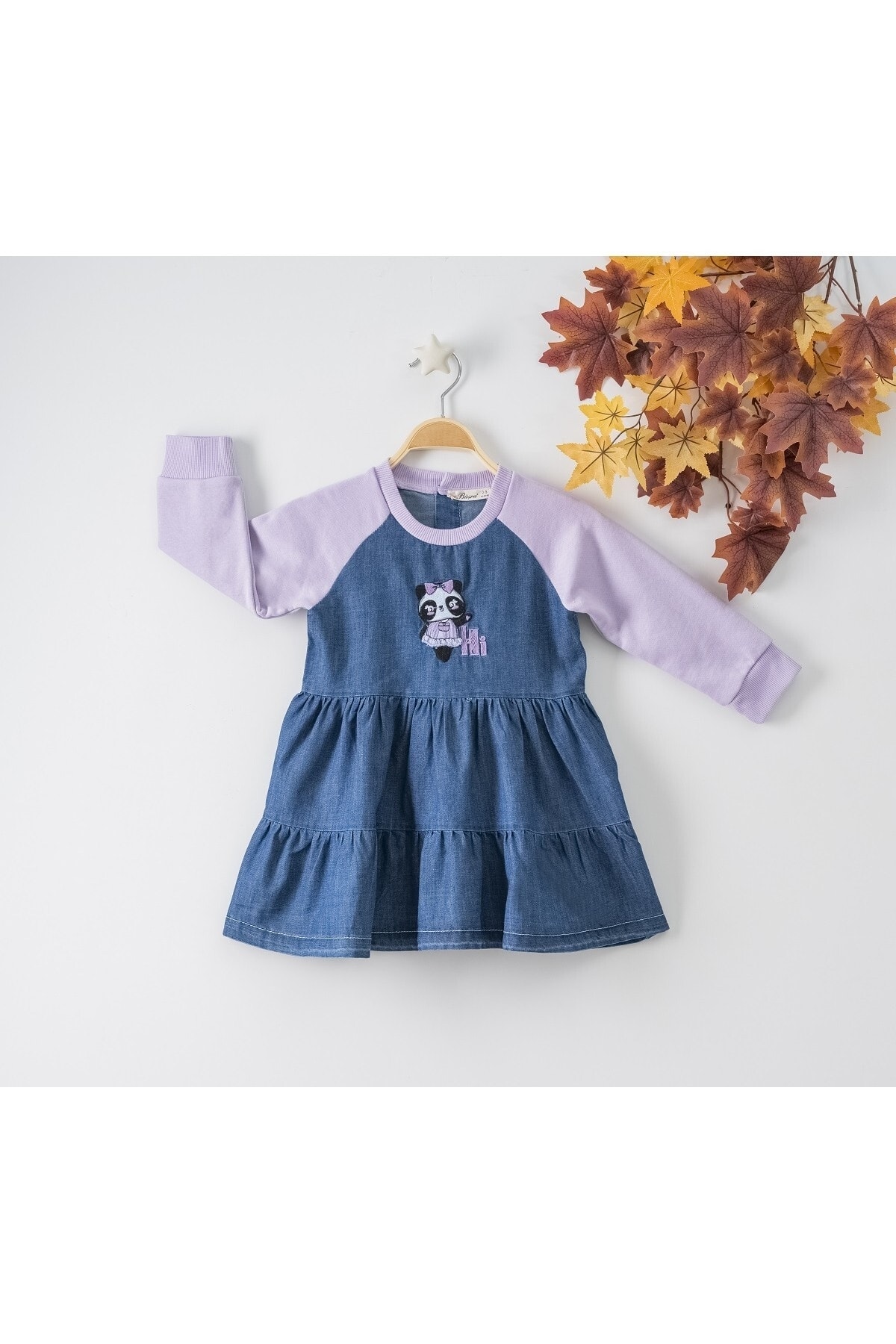 ,hı Pandalı Kot 3ip Kız Çocuk Elbise ,hı Pandalı Kot 3ip Kız Çocuk Elbise 22265 5-6 Yaş