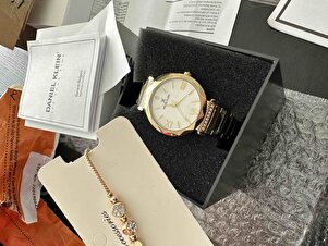 Kadın Kol Saati 3 Atm Su Geçirmez Gold Renk Çelik Kordon + Bileklik Elg581 Kadın Kol Saati 3 Atm Su Geçirmez Gold Renk Çelik Kordon + Bileklik Elg581 DKBY2003 تک سایز