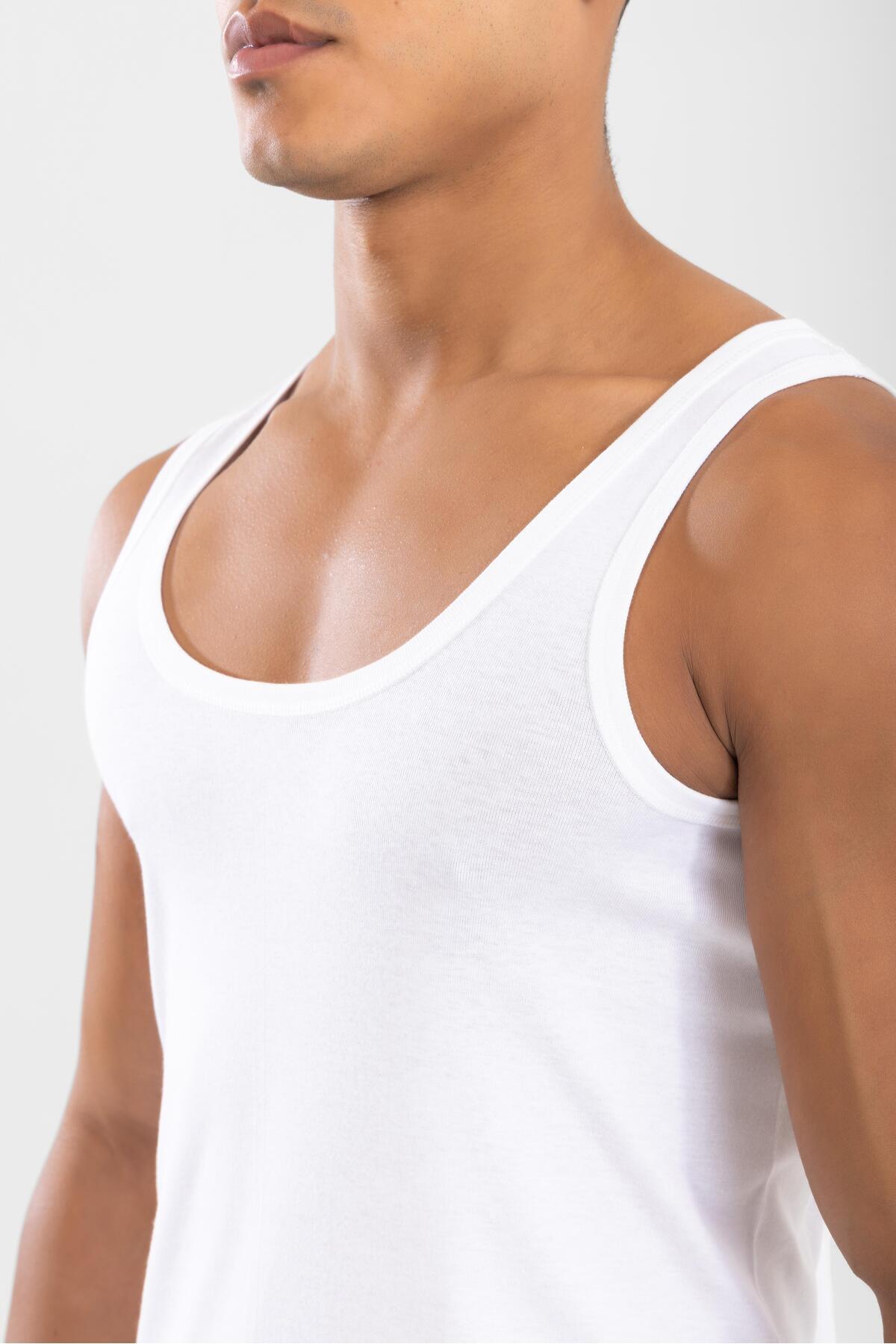 Erkek Pamuklu Slim Fit Düz Klasik Ribana Atlet Beyaz Erkek Pamuklu Slim Fit Düz Klasik Ribana Atlet Beyaz 1002-1 2XL