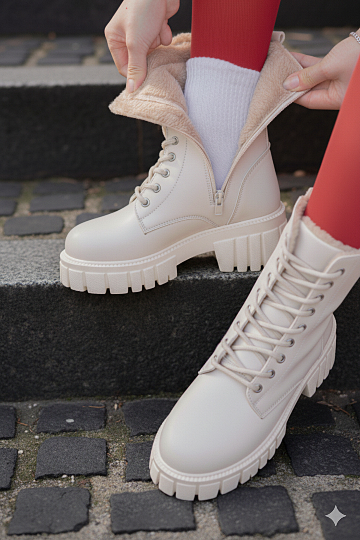 Kadın Bot Postal Yandan Fermuarlı Bağcıklı Bej Renk Termo Kaymaz Taban 4 Cm KY3040 Kadın Bot Postal Yandan Fermuarlı Bağcıklı Bej Renk Termo Kaymaz Taban 4 Cm KY3040 40