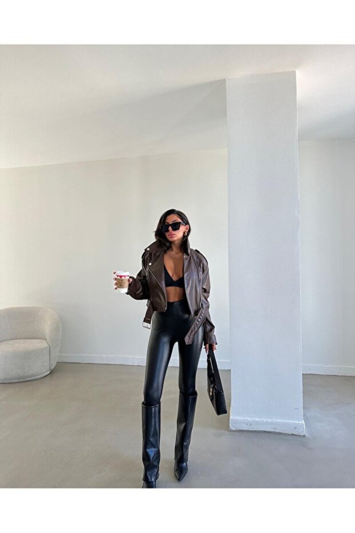 Kadın Giyim Pantolon Boy Cepli Deri Ceket Kadın Giyim Pantolon Boy Cepli Deri Ceket TYC00570061570 L