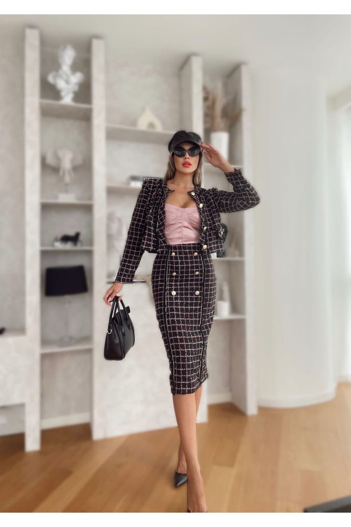 Taşlı Düğme Detaylı Ekose Desenli Tüvit Yeşil Takım Taşlı Düğme Detaylı Ekose Desenli Tüvit Yeşil Takım M2KMTKG343 42