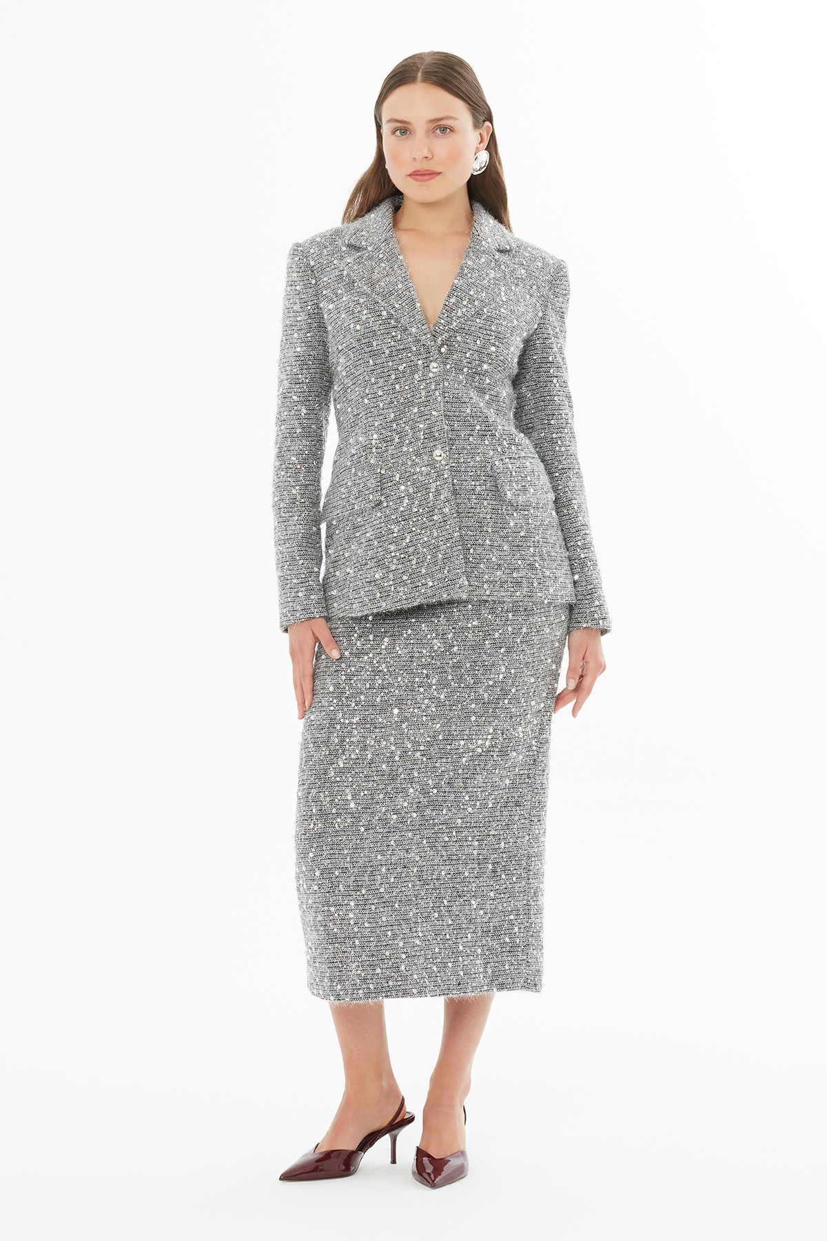 Taşlı Düğme Detaylı Asimetrik Kesim Lacivert Ceket Taşlı Düğme Detaylı Asimetrik Kesim Lacivert Ceket M2KM4G0901 42