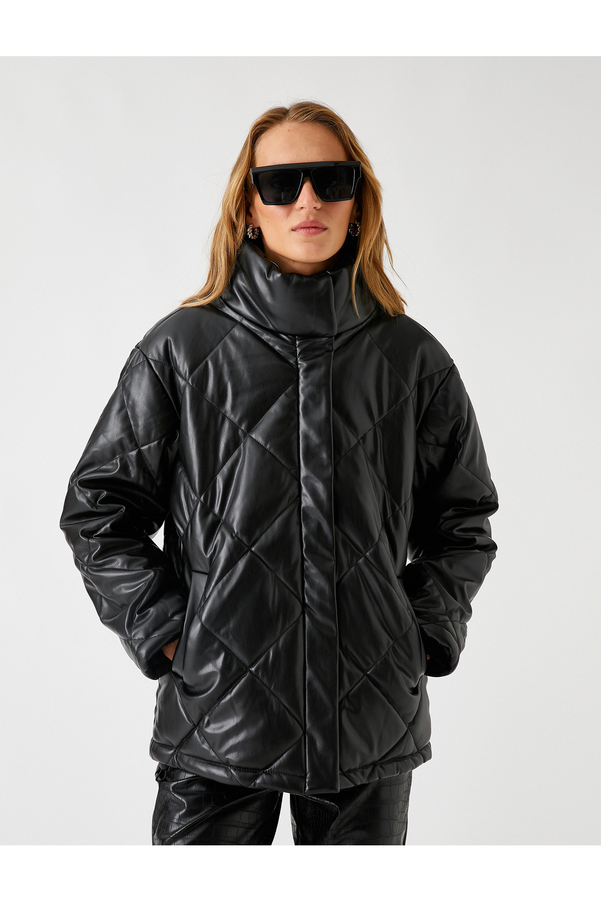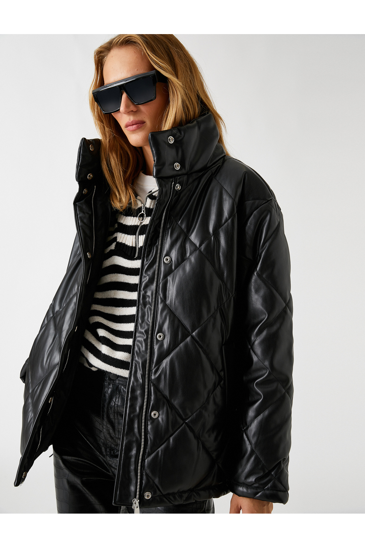 Suni Deri Şişme Mont Dik Yaka Çıtçıtlı Suni Deri Şişme Mont Dik Yaka Çıtçıtlı 3WAK20016EW 42