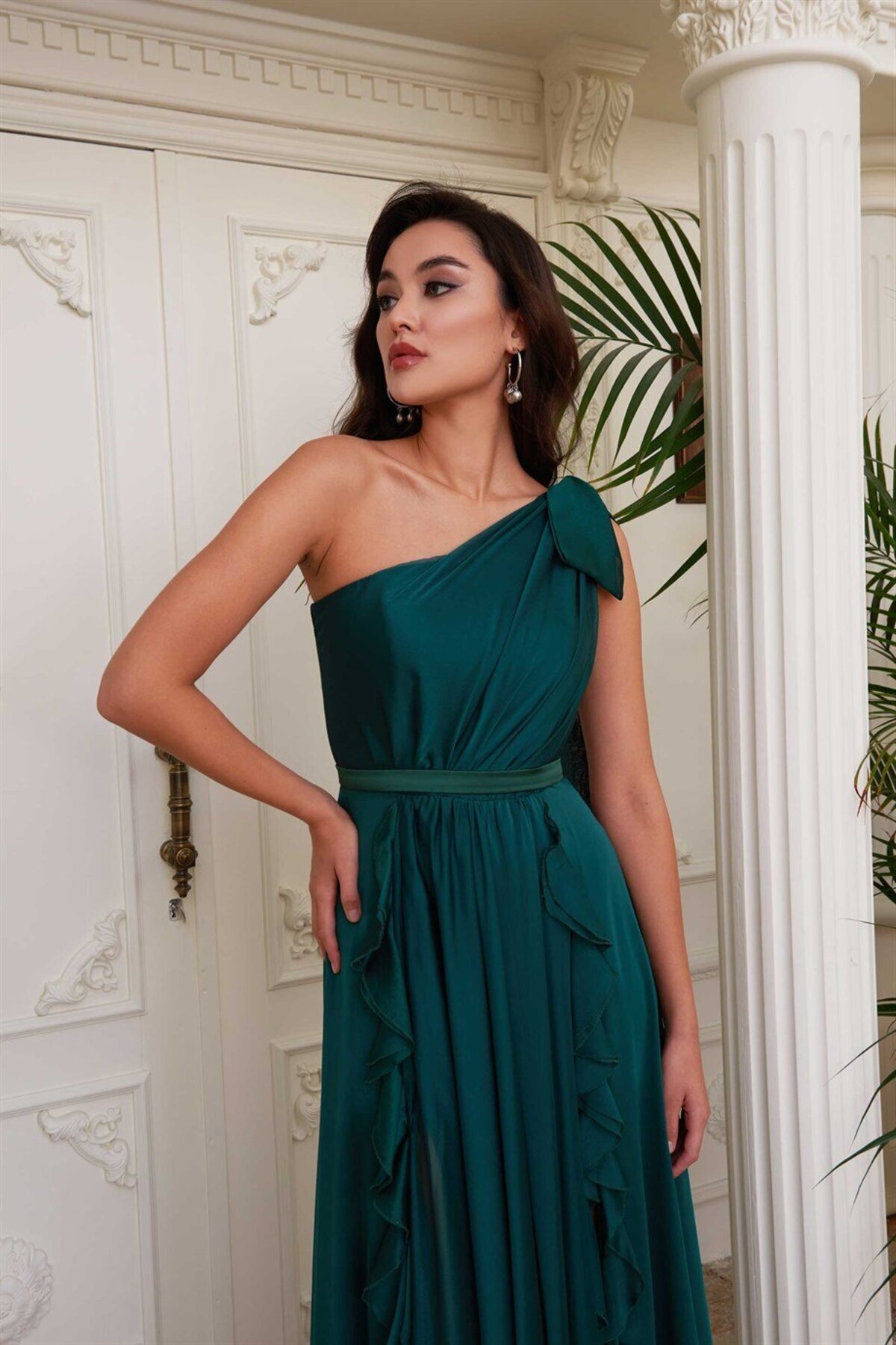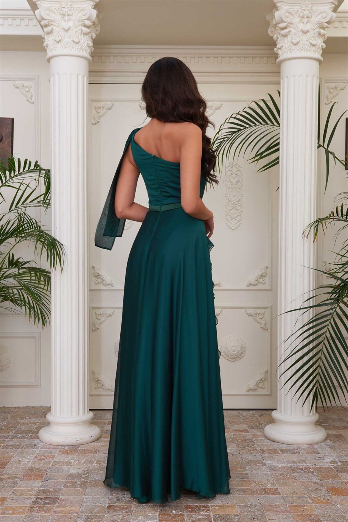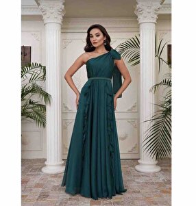 Zümrüt Şifon Tek Omuzlu Uzun Abiye Elbise Zümrüt Şifon Tek Omuzlu Uzun Abiye Elbise 55812 48