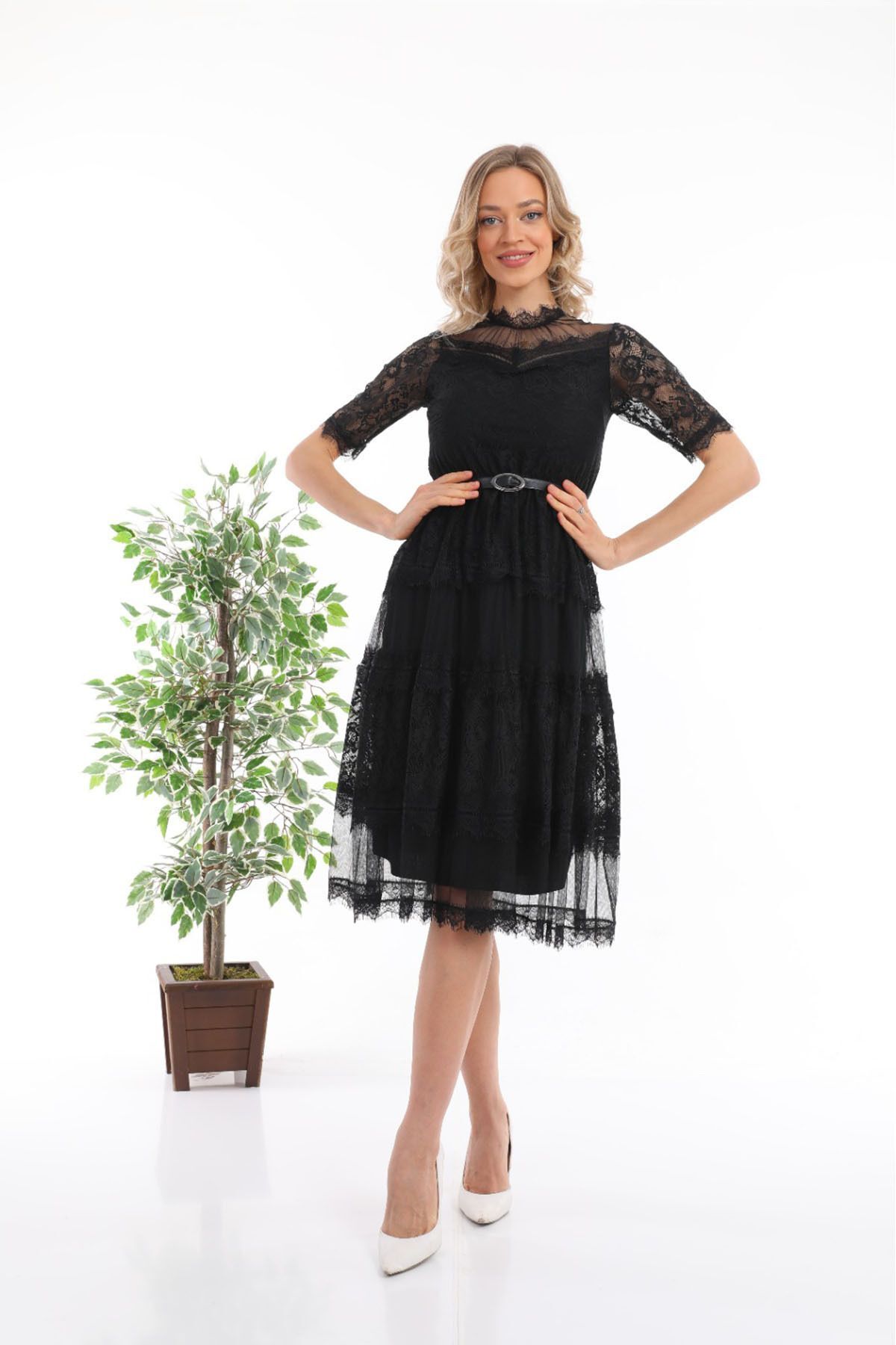 Kadın Drapeli Siyah Kadife Yeni Sezon Kalem Elbise Kadın Drapeli Siyah Kadife Yeni Sezon Kalem Elbise ELBISEDELISI-0164 L