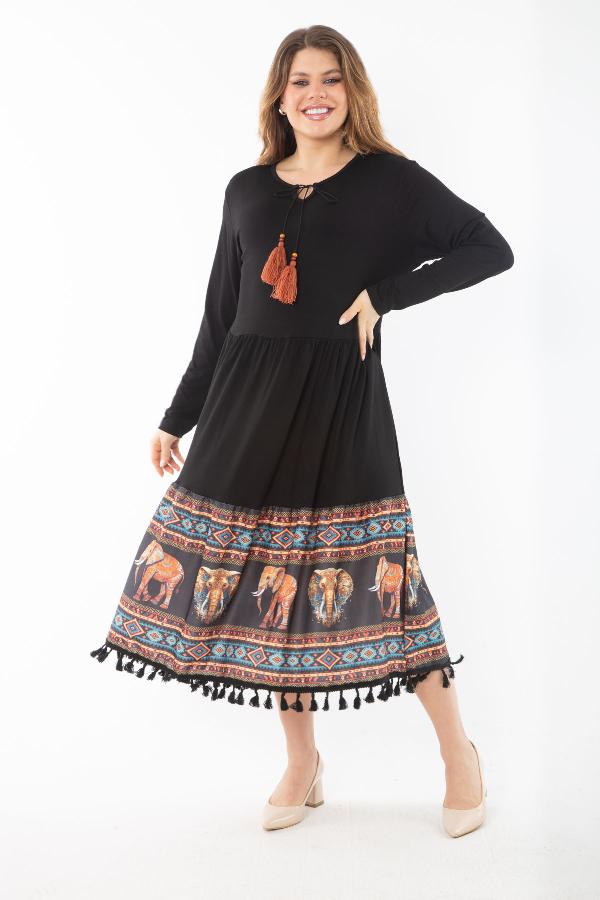 Kadın Büyük Beden Siyah Nakış Detaylı Uzun Kollu Katlı Elbise 65n34608 Kadın Büyük Beden Siyah Nakış Detaylı Uzun Kollu Katlı Elbise 65n34608 65N34608 52