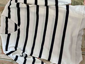 Kadın Ekru-Siyah V Yaka Çizgili Triko Kazak Kadın Ekru-Siyah V Yaka Çizgili Triko Kazak 2KKTRTN7065 Standart
