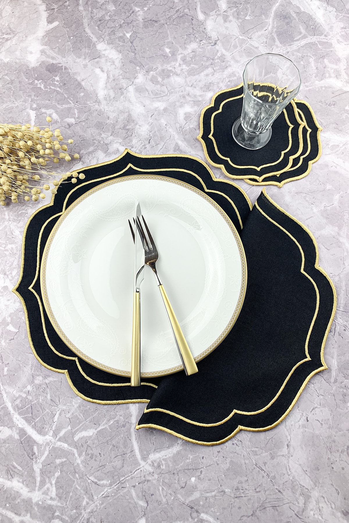 Siyah Renkli Gold Çift Sargı Nakışlı 6'lı Amerikan Servis Siyah Renkli Gold Çift Sargı Nakışlı 6'lı Amerikan Servis WRE2CIFTSAME6 تک سایز