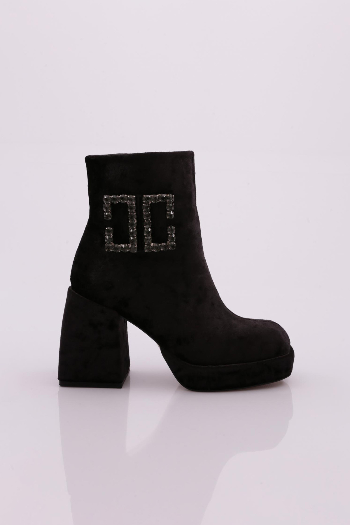 Yuvarklak Burun Zincir Detaylı Kadın Topuklu Bot Siyah Fediye Süet 26543285 Yuvarklak Burun Zincir Detaylı Kadın Topuklu Bot Siyah Fediye Süet 26543285 40