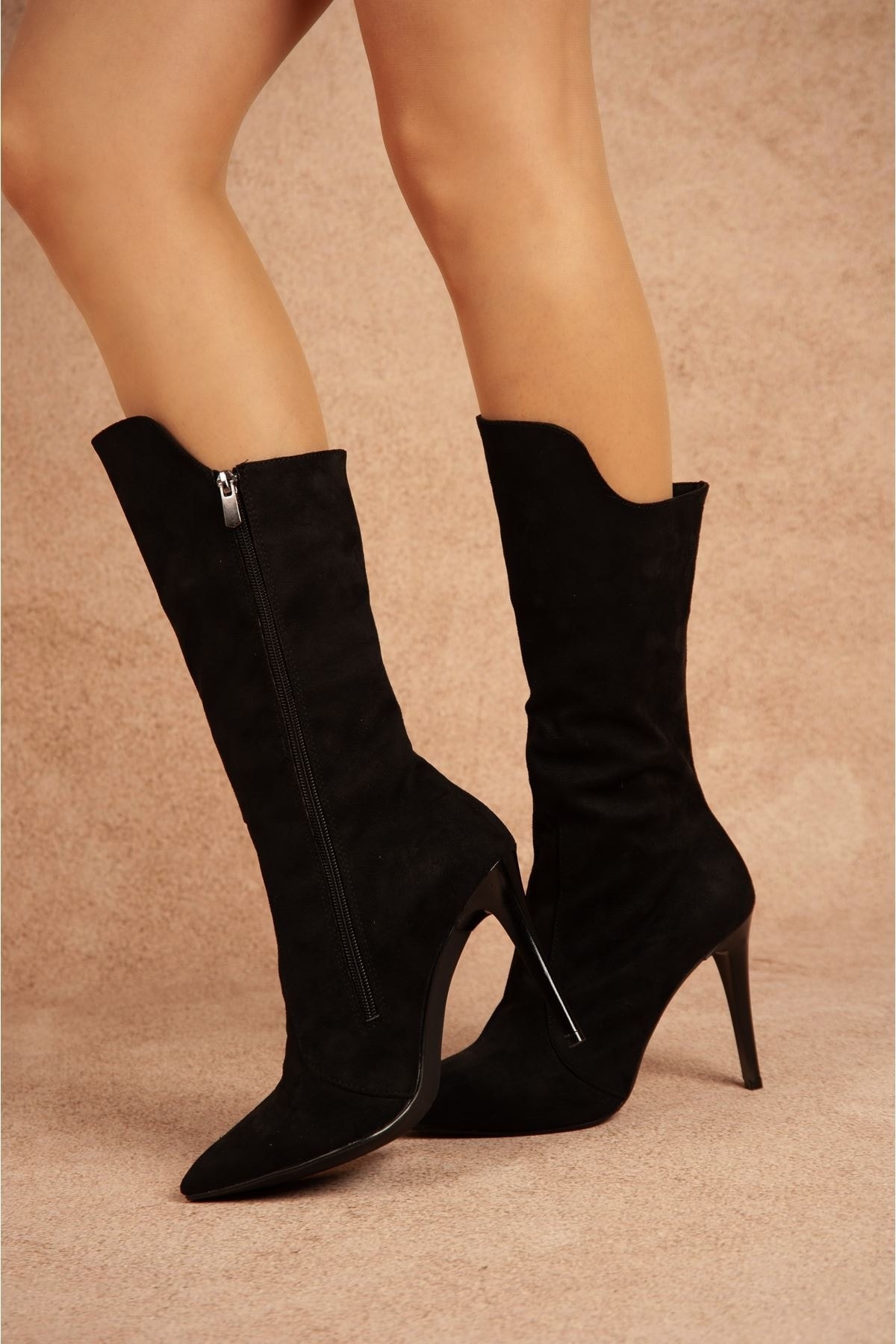 Siyah Topuklu Deri Çizme Siyah Topuklu Deri Çizme KPOST-01009 42