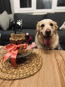 Gercekten hem eglenceliydi pastayi kurmak hemde kizim da Heyecanla beklemesi onun ozel gununu kutlamak cok tatliydi. Pasta cok guzel paketlenmisti ve hediye kurabiyeleriniz icinde tesekkur ederim. Diger kopekler icinde ekstra olarak pasta almistim cok iyi oldu kuru meyve ve dekorasyon da cok guzeldi renk katti biz cok begendik eglendik sira da kedimiz icin pasta alicaz:) patili cocuklarinizla guzel vakit ve guzel resimler ciksin istiyorsaniz eger Herkese oneririm:)!