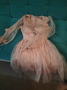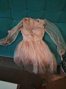 Büzgülü Gloplu Mini Tül Abiye Büzgülü Gloplu Mini Tül Abiye 217 M