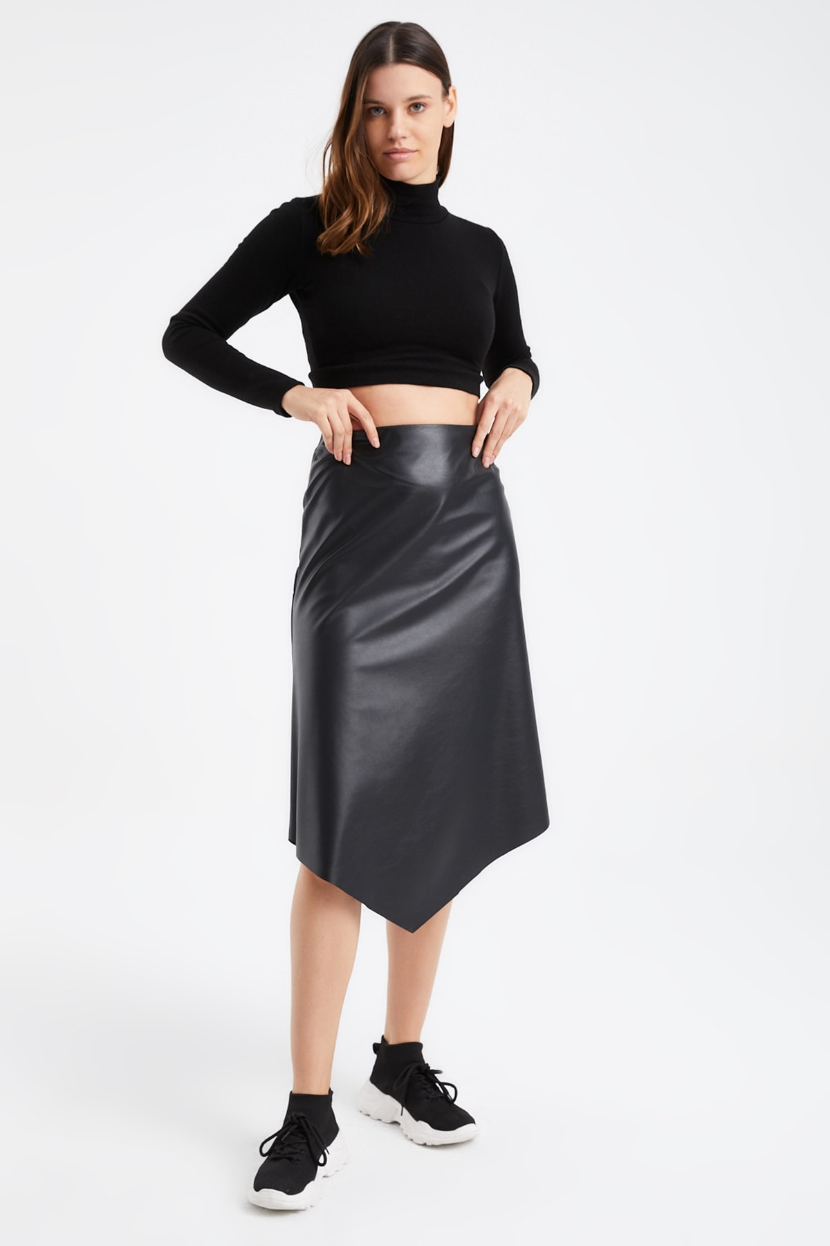 Kadın Siyah Asimetrik Kesim Deri Etek 16L4949 Kadın Siyah Asimetrik Kesim Deri Etek 16L4949 42