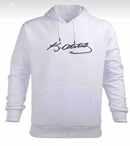Atatürk Imzalı Beyaz Kapüşonlu Sweatshirt Kapşonlu Atatürk Imzalı Beyaz Kapüşonlu Sweatshirt Kapşonlu swt00026 XL/2XL