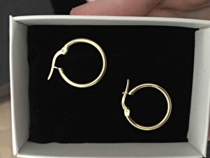 925 Ayar Gold Kaplamalı 2 Cm Halka Gümüş Küpe 925 Ayar Gold Kaplamalı 2 Cm Halka Gümüş Küpe SKU2676 تک سایز